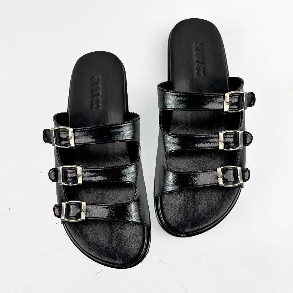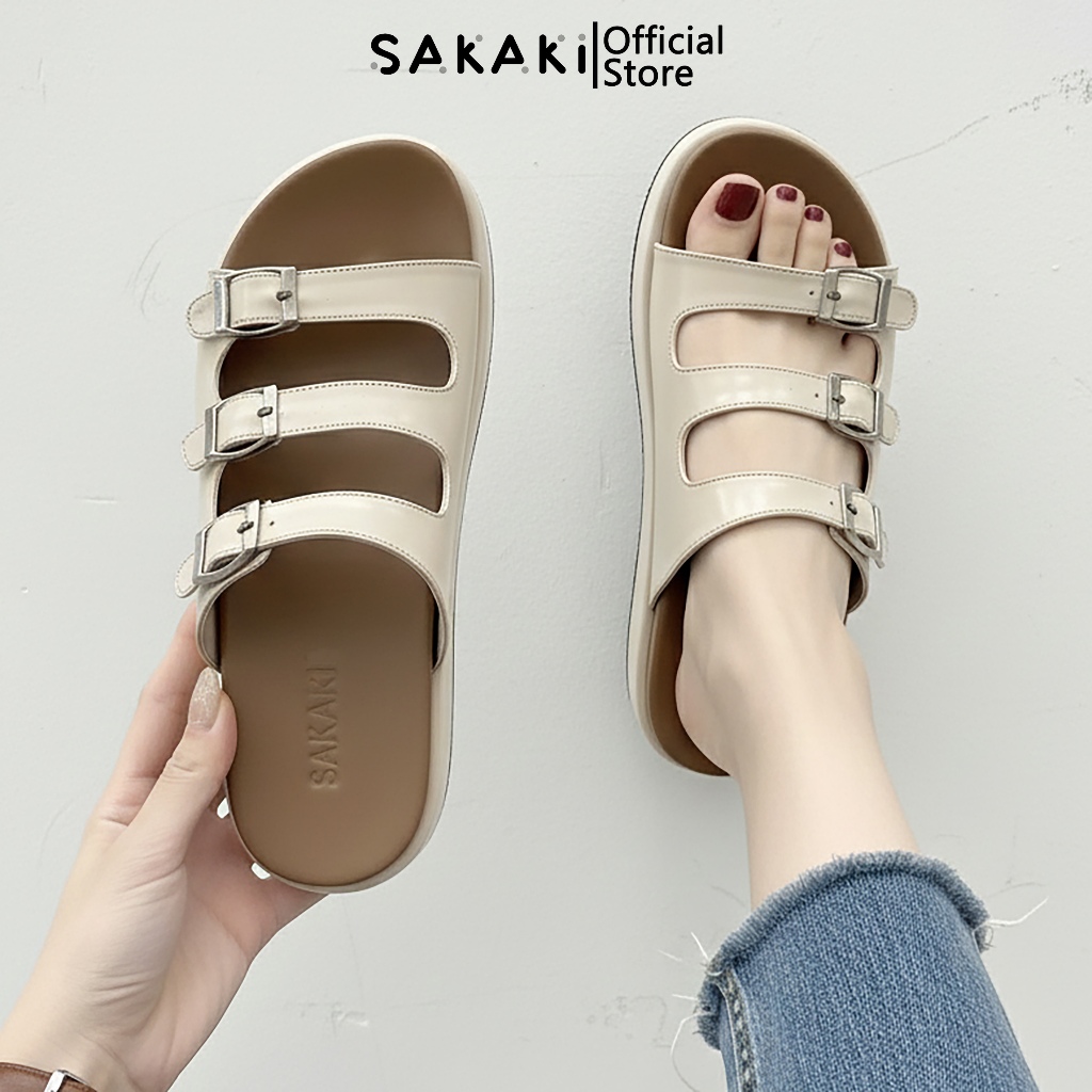 SAKAKI Trivello - Women's Triple Strap Buckle Sandals, Comfortable for Daily Wear, Soft, Anti-Slip Soles Sandal Perempuan Selipar Wanita Sandals for Women