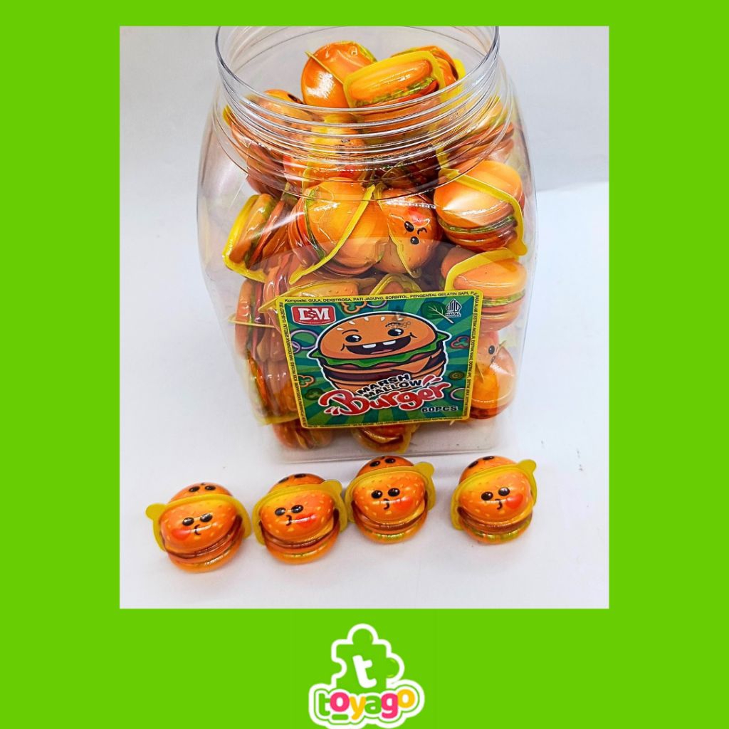 Marshmallow burger jar DSM contains 60 pcs fruit flavor marshmello cute burger shape candy wholesale