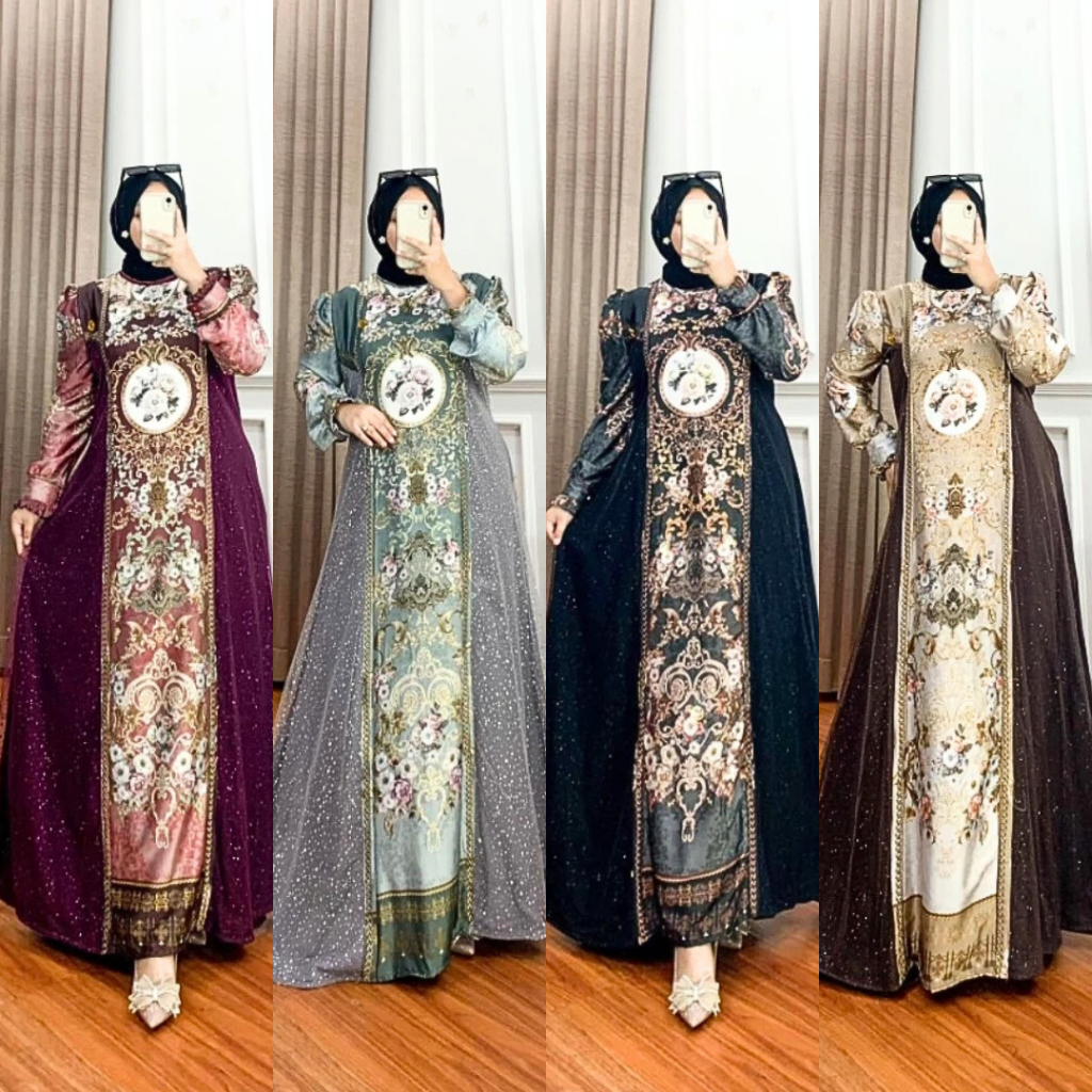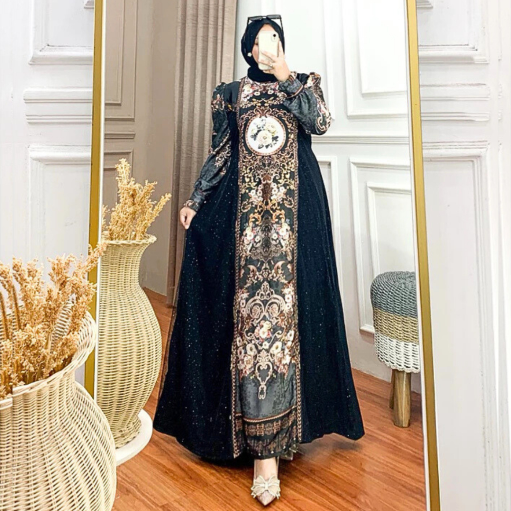 Salma Silk Sultan Dress | Luxurious Printed Gamis for Women's Eid Invitations | Latest Raya Dress Jubah Muslimah Dress Muslimah