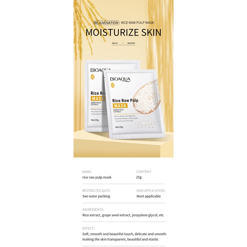 BIOAQUA Rice Raw Pulp Facial Mask Moisturizing Hydrating Skin Rejuvenation Facial Mask