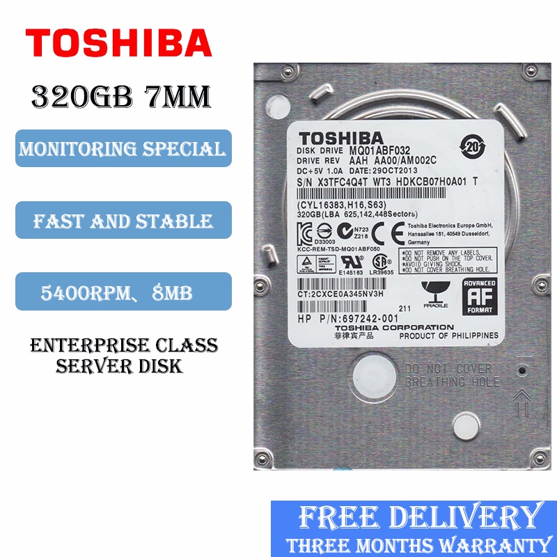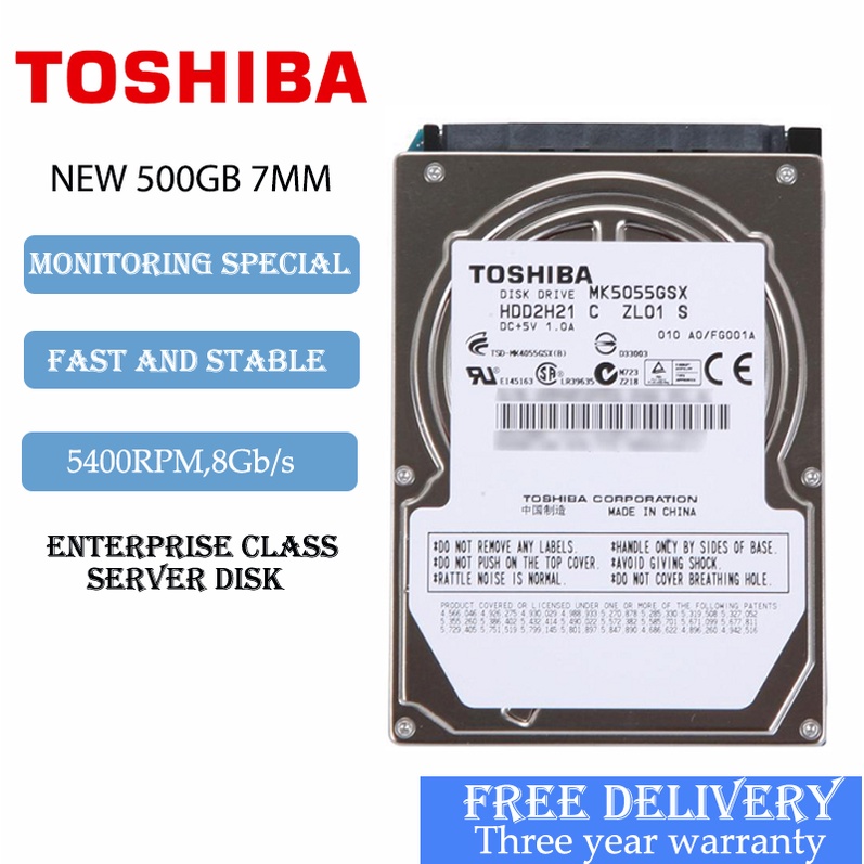 Toshiba 2.5" Laptop SATA Hard disk 160GB 250GB 320GB 500GB 640GB 750GB 1TB 7mm Hdd drives 7200rpm
