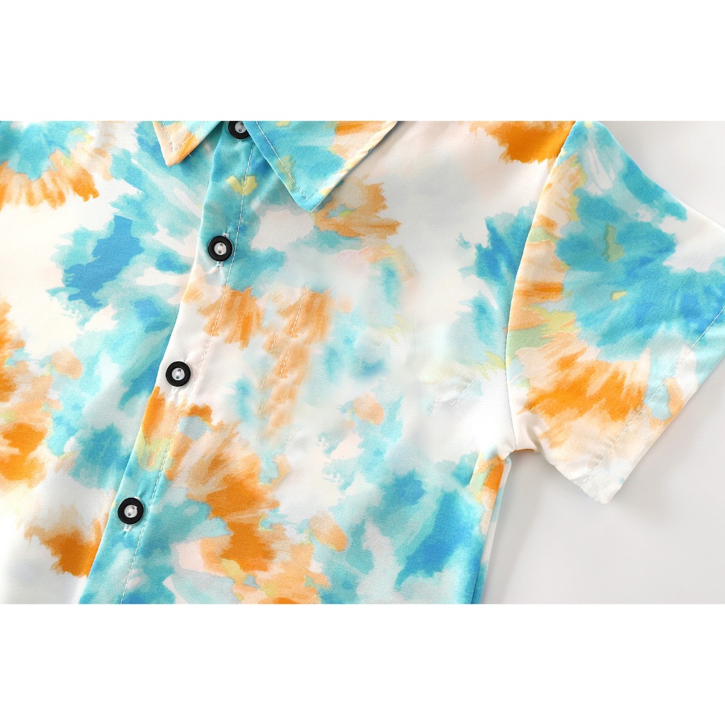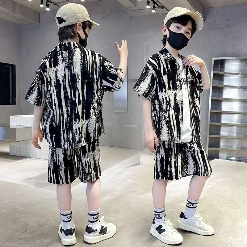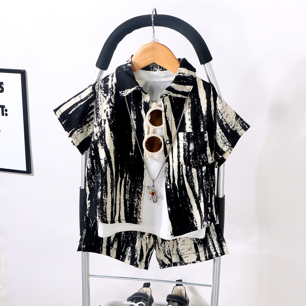 [ZY] 70-160cm Ready Stock Children Splash Ink Cardigan Suit Half-Sleeve Shirt Shorts Suit Quick-Drying Clothes Trendy Short-Sleeved Suit Baby Breathable Casual Suit