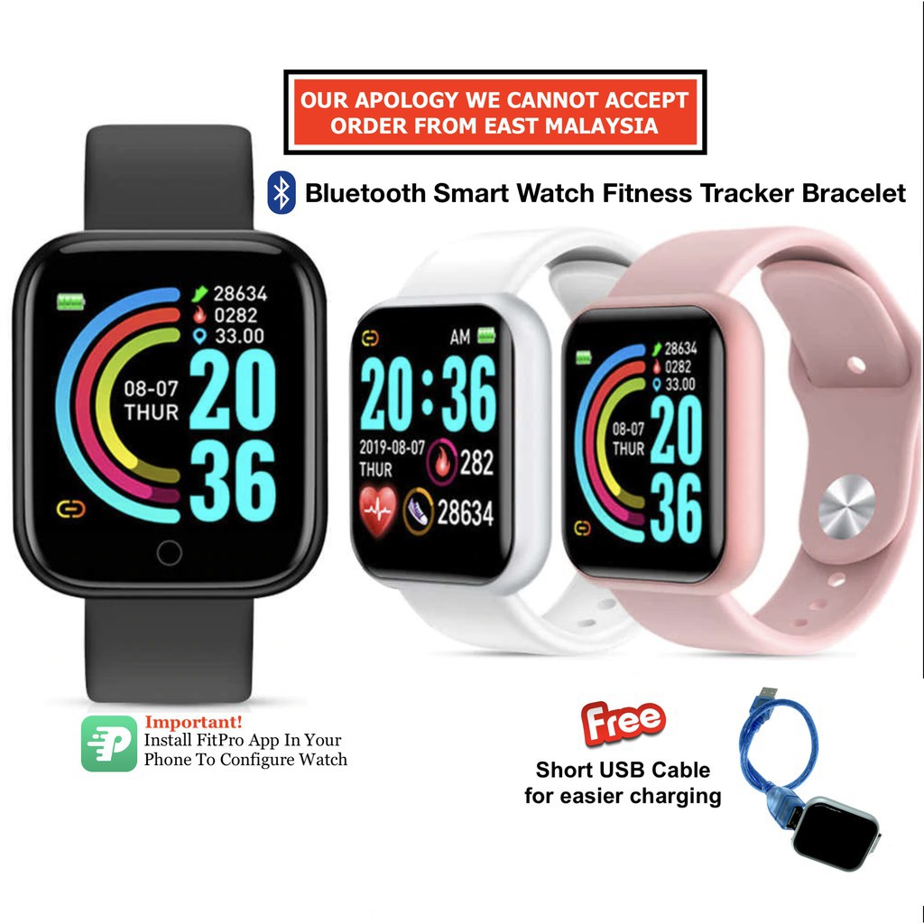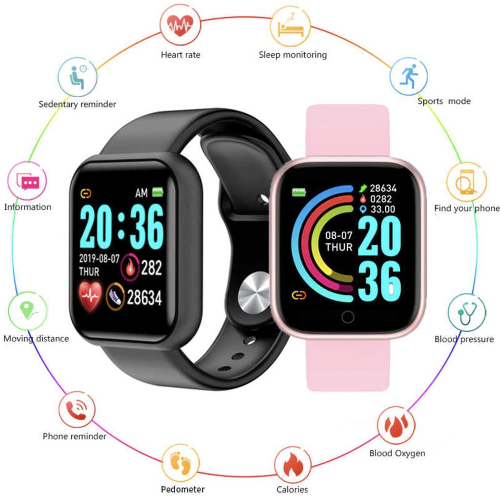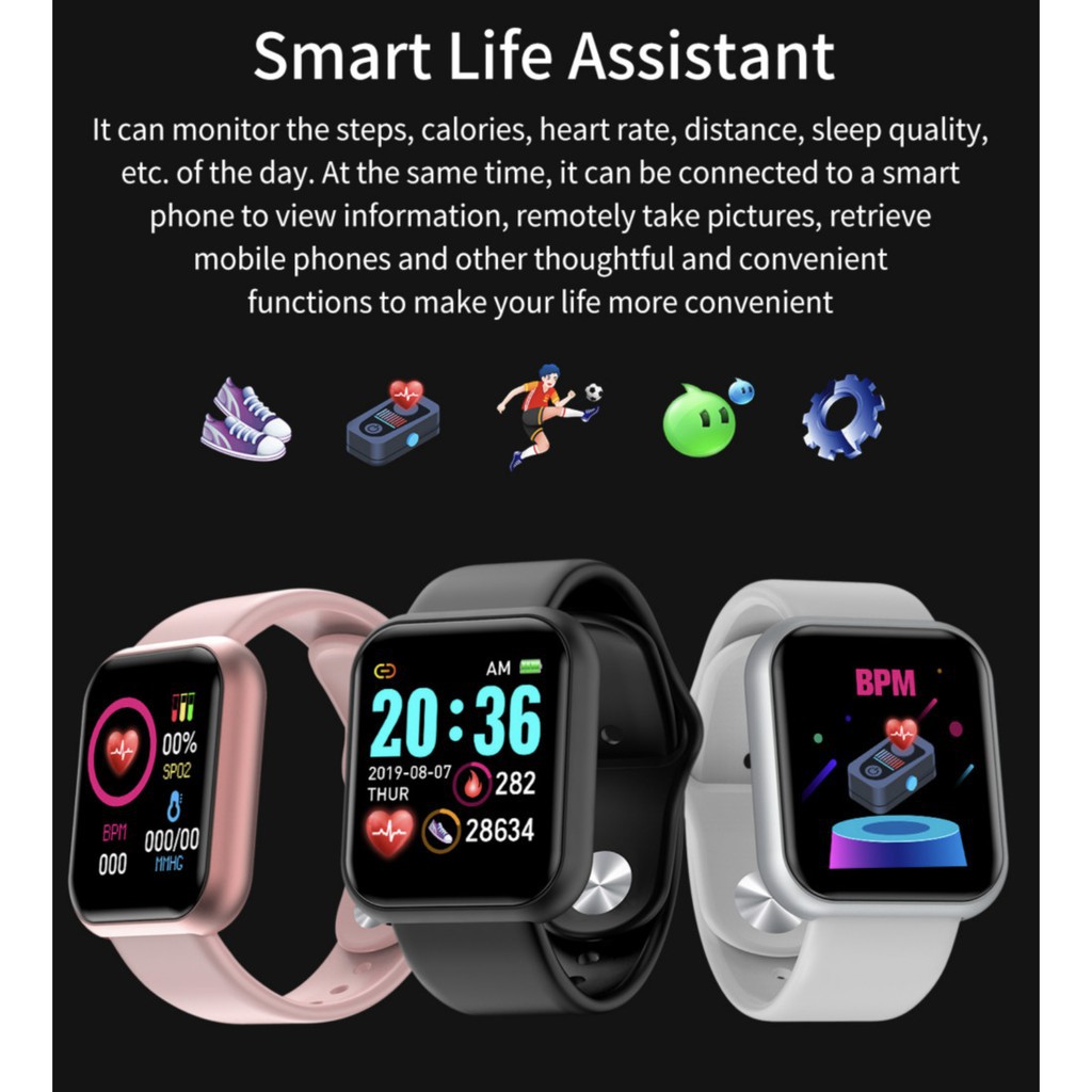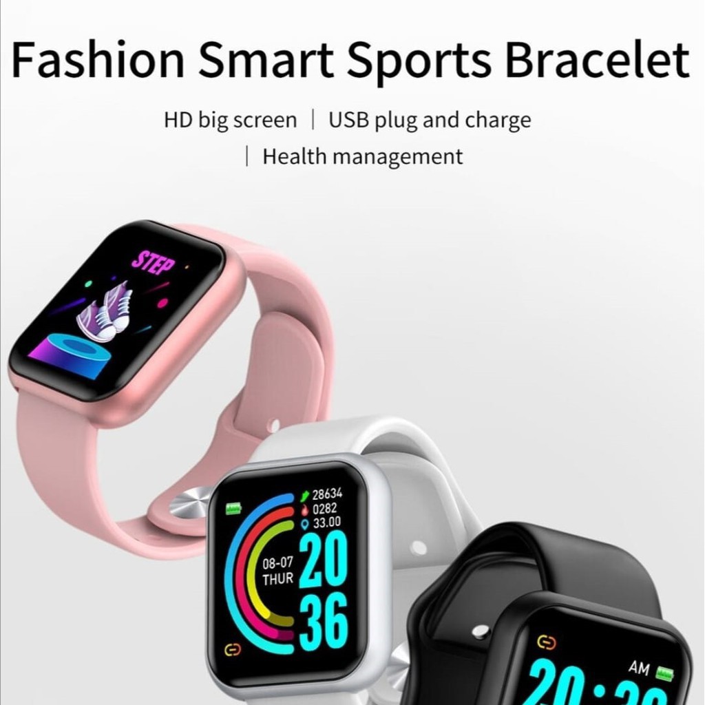Spot Y68 D20Pro Smart Watch Jam Pintar Sports Bluetooth Blood Pressure Heart Rate Smartwatch Fitness for Men Women Kids