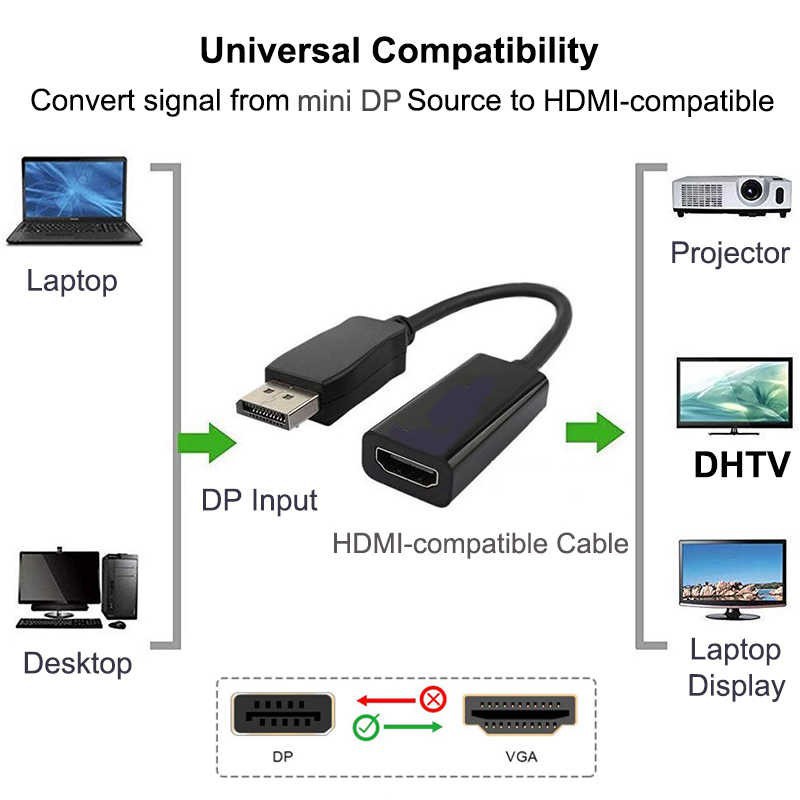 4k*2k Thunderbolt Mini Display Port to HDMI Adaptor Mini DP Male To HDMI Female Adaptor Converter Full HD