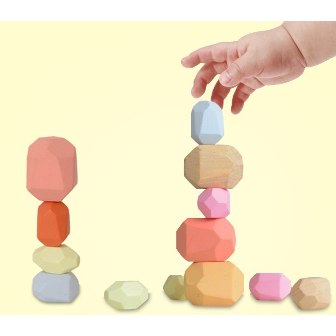 Nordic Wooden Balance Blocks Set Kid Building Blocks Set Wooden Rainbow Stone for Kids Lightweight Natural Colored