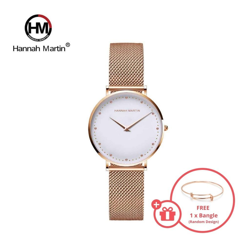 Hannah Martin Cobalt Stone Dial Women Quartz Watch FREE 1 x Bangle (Random) Jam Tangan Wanita