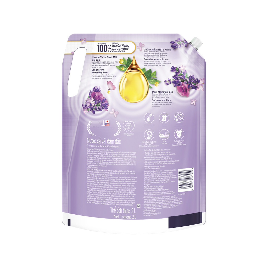 [Carton of 4] Downy Premium Parfum French Lavender Concentrate Fabric Softener 2L