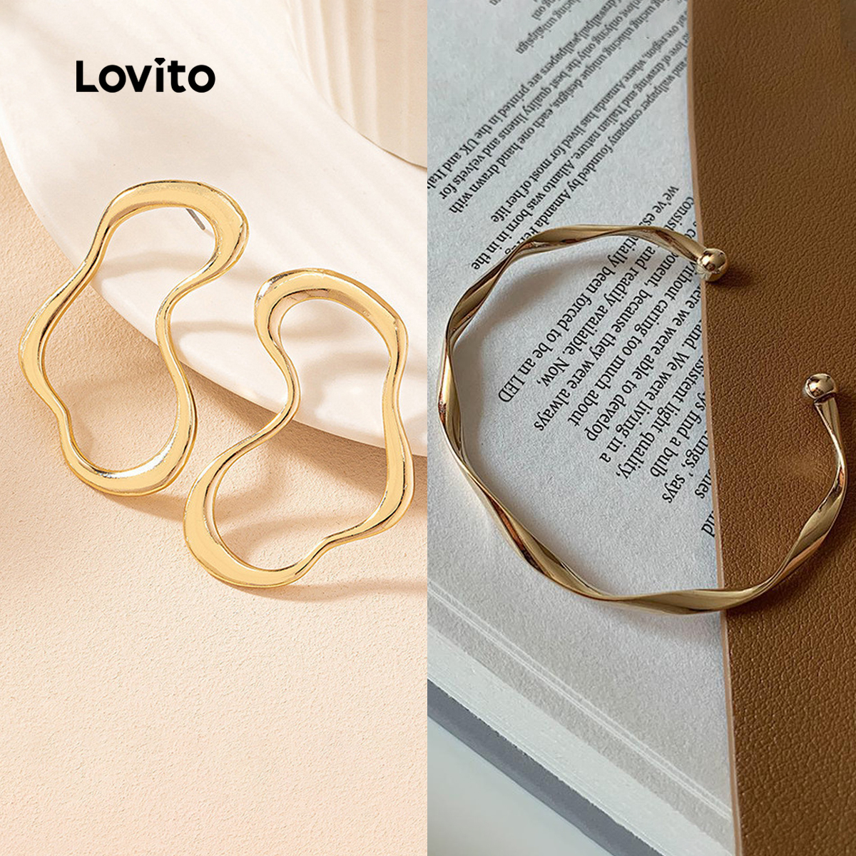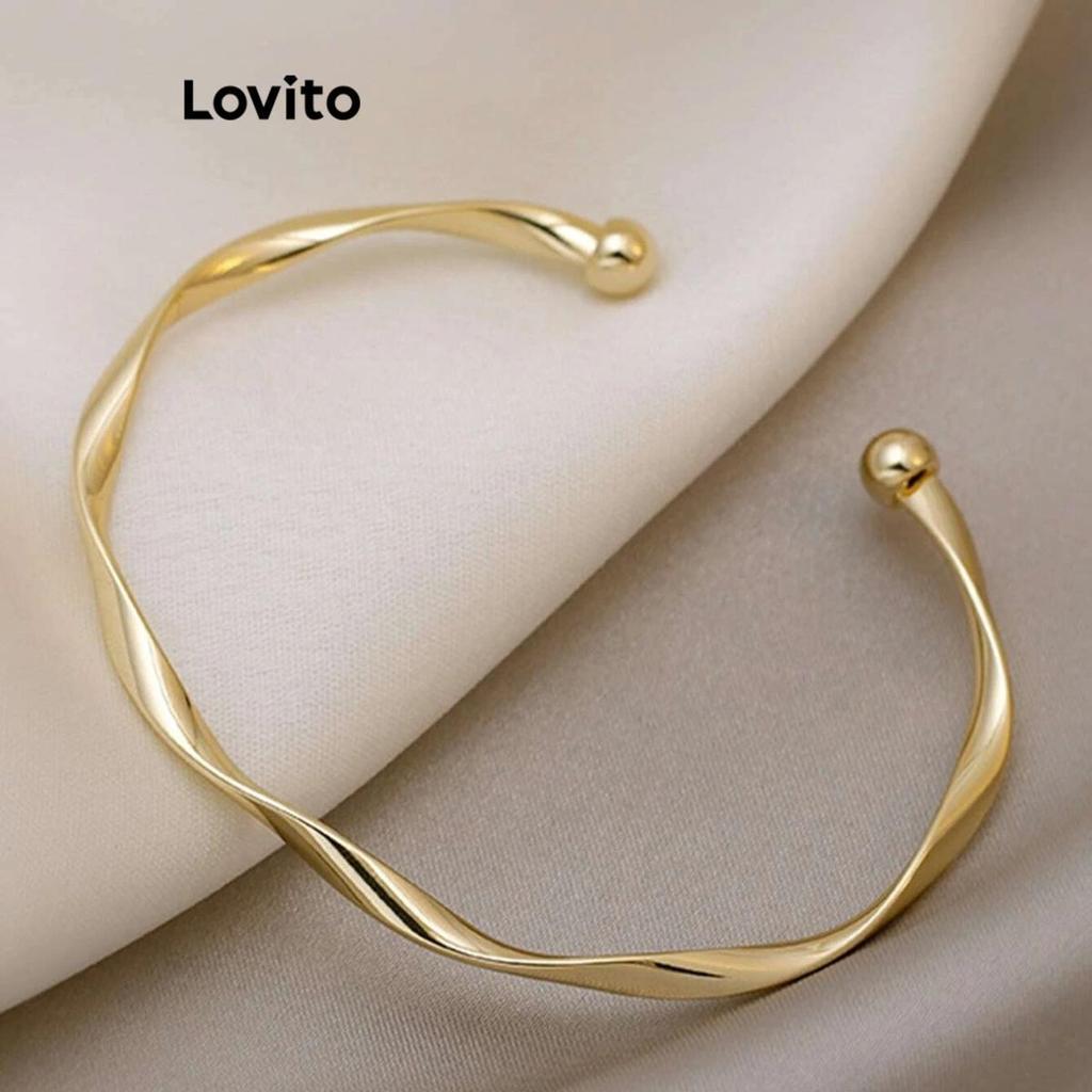 Lovito Casual Plain Open Mobius Versatile Bestie Couple Bracelet for Women LFA09649 Lovito Gelang Pasangan Bestie Serbaguna Mobius Terbuka Polos Kasual untuk Wanita
