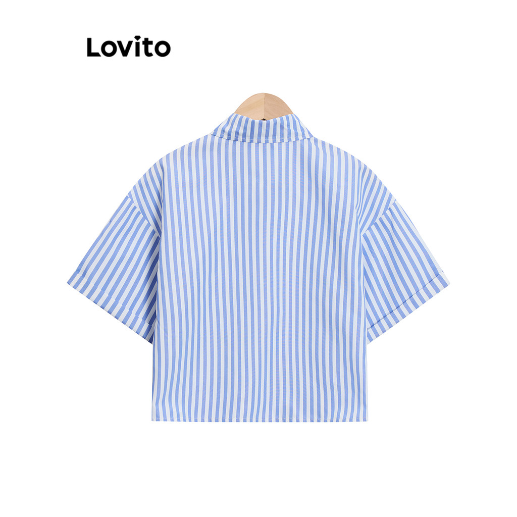 Lovito Casual Striped Button Front Short Blouse for Women L106AD313 Lovito Blaus Pendek Berjalur Kasual Bahagian Depan Untuk Wanita L106AD313