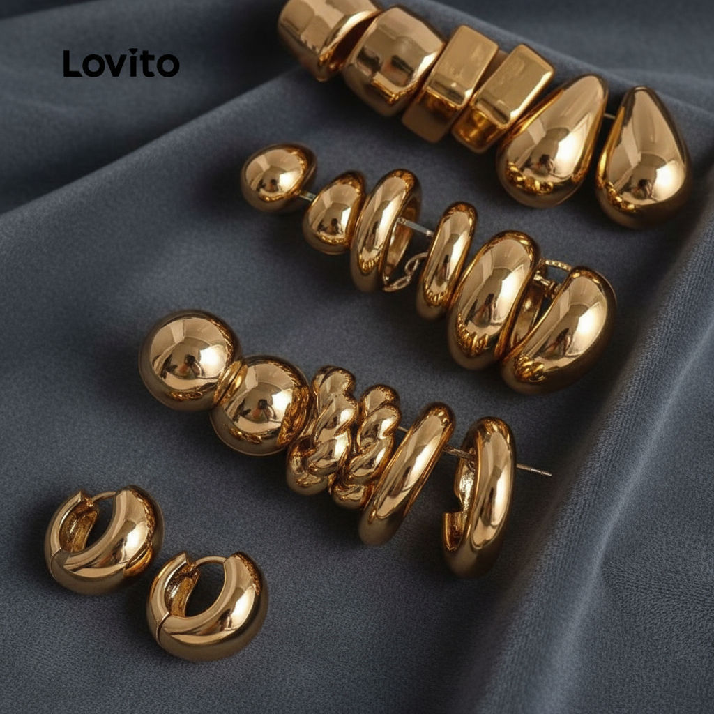 Lovito Anting-anting Logam Elegan LFA92003 - Aksesori Telinga Anggun