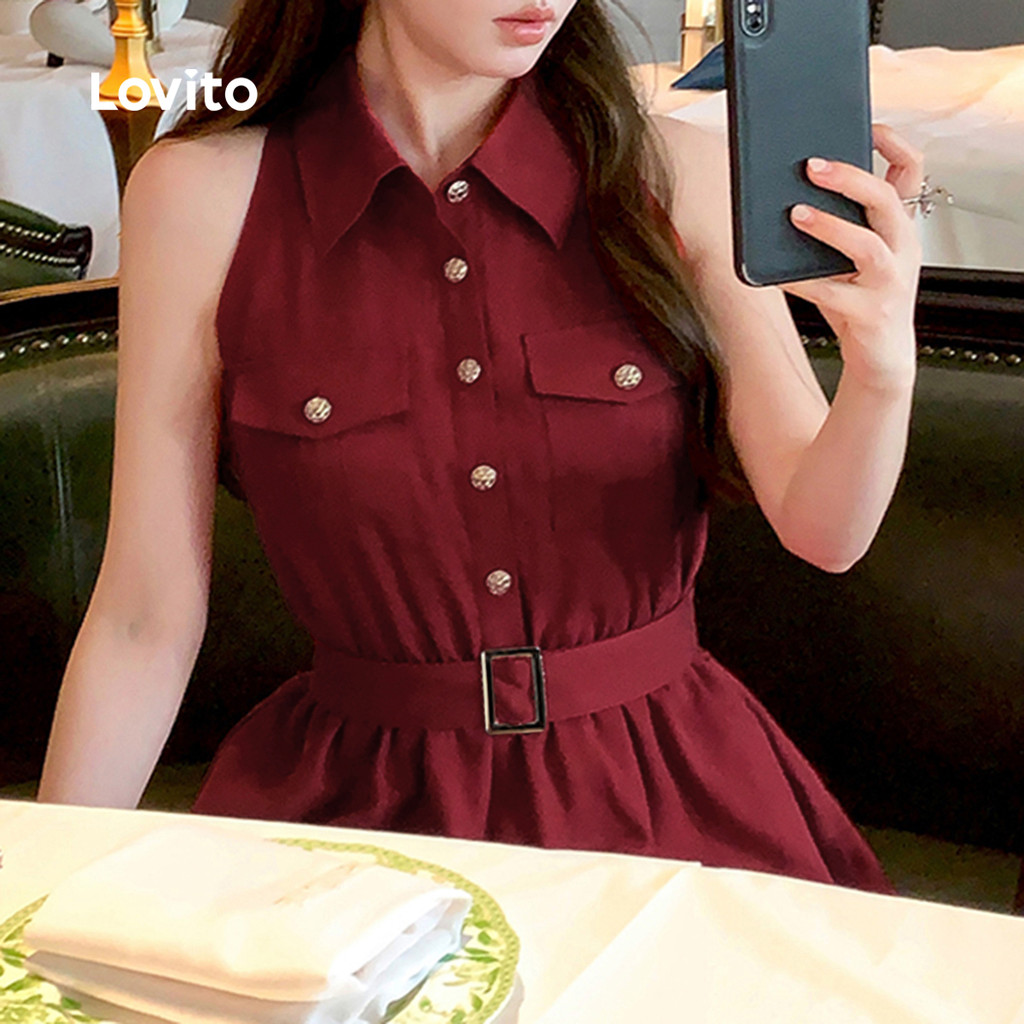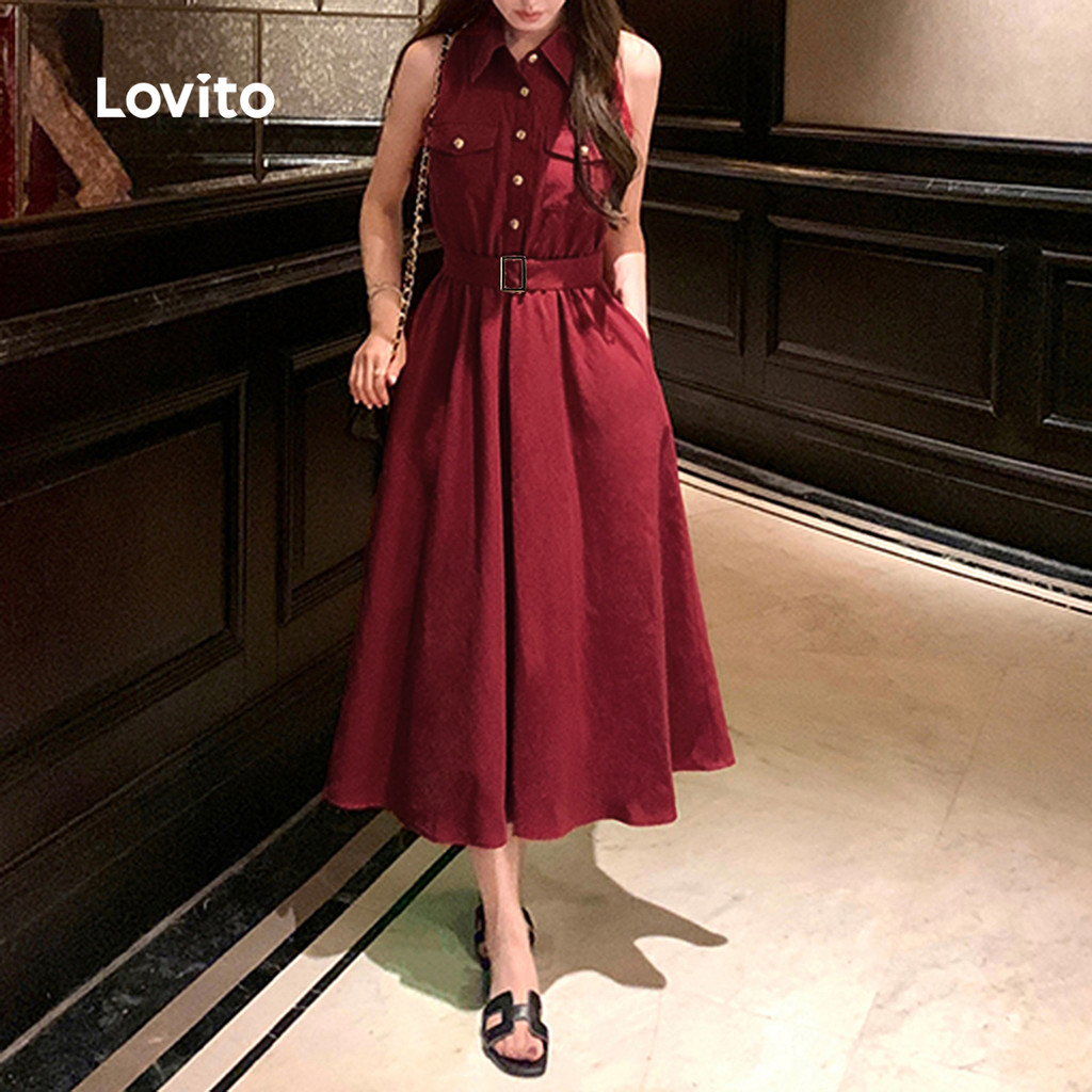 Lovito Casual Dress Button Pocket Spring/summer Claret Dress for Women LK2ED823 Lovito Gaun Kasual Berbutang Poket Gaun Klaret Musim Bunga/musim Panas Untuk Wanita LK2ED823