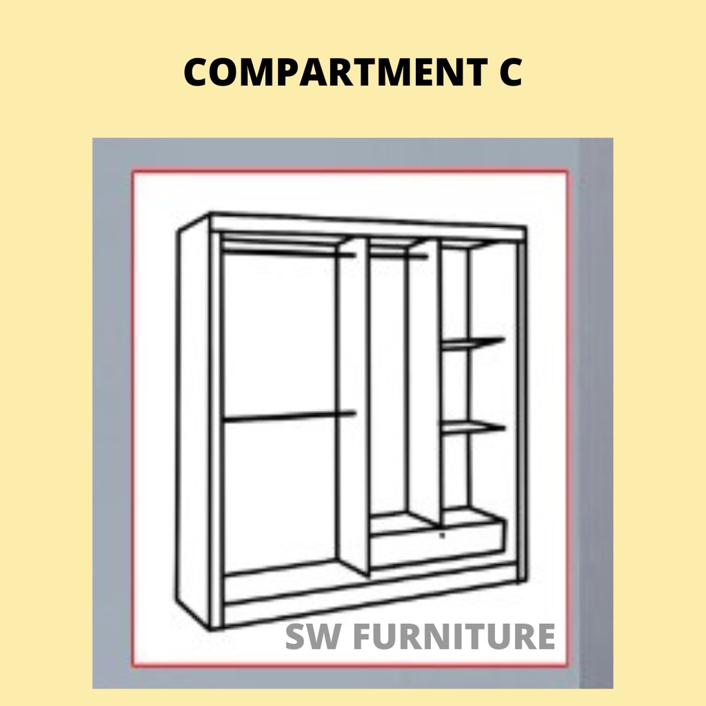 6feet Full Melamine Antijump Wardrobe (Full Mirror Door/Transparent Door/Glass Door)