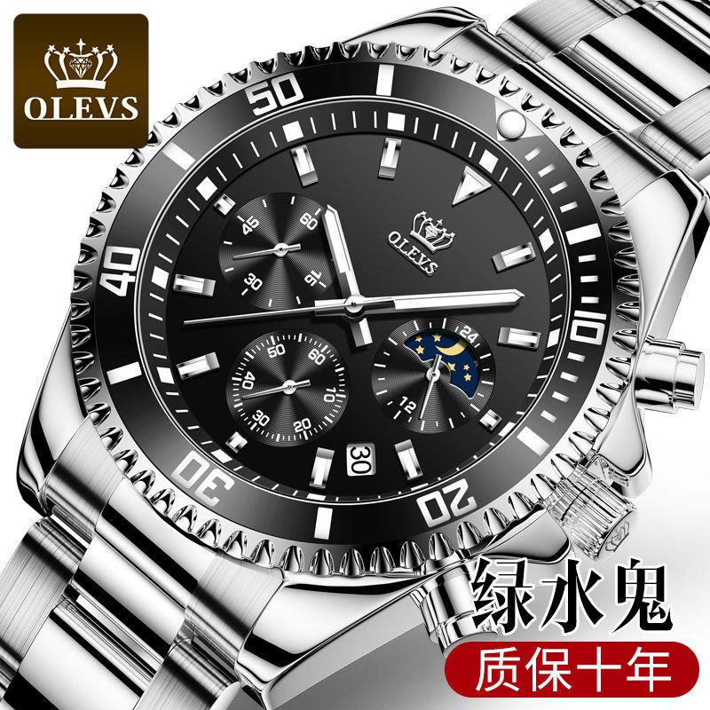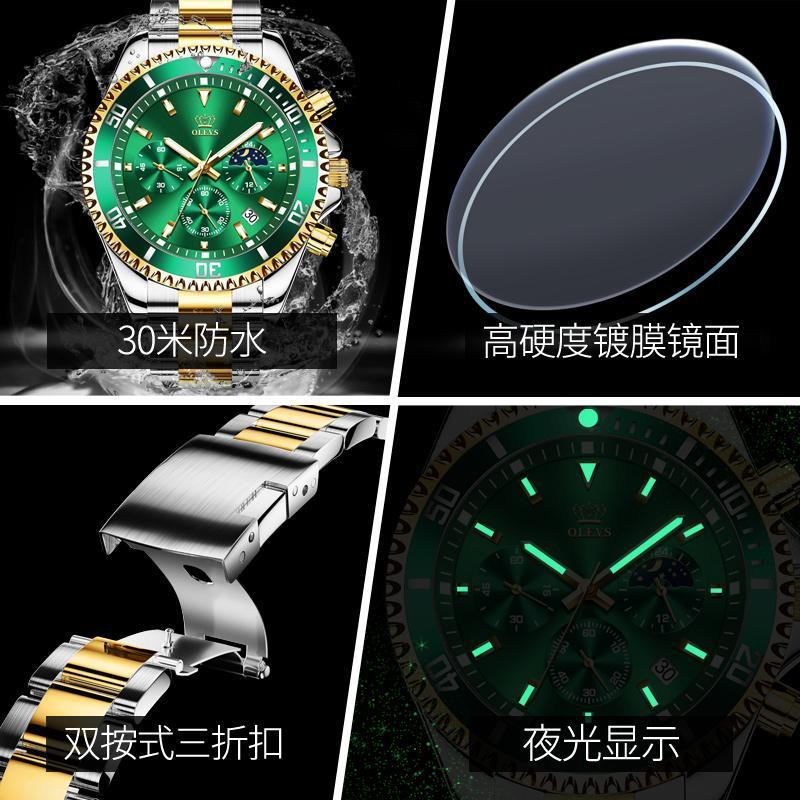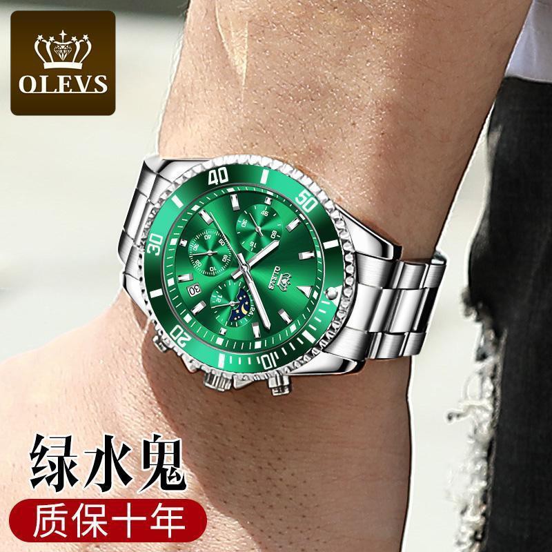✜✢Jam tangan mewah Switzerland jenama jam tangan air hijau jam tangan lelaki sukan air kalis air bercahaya hitam jam tan