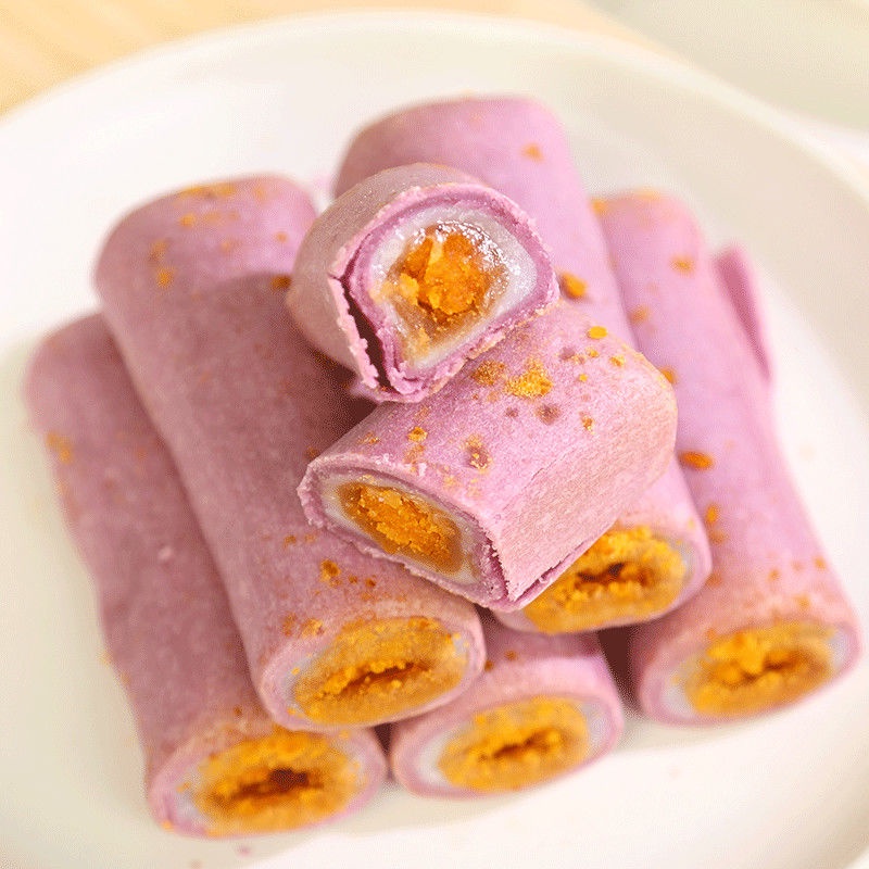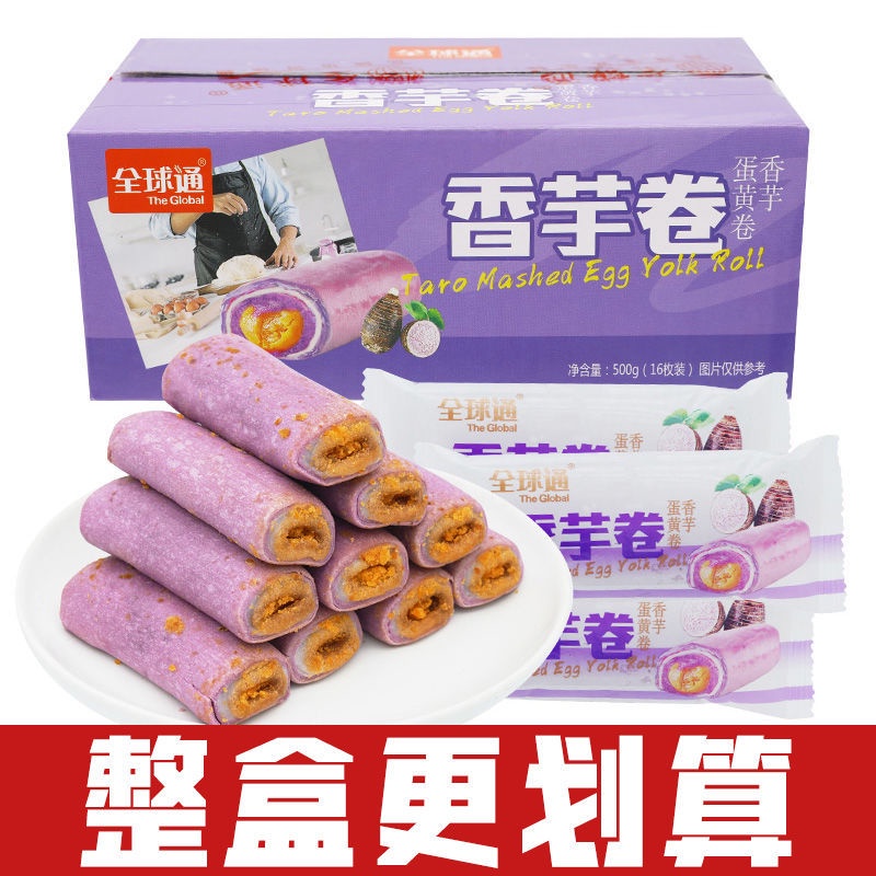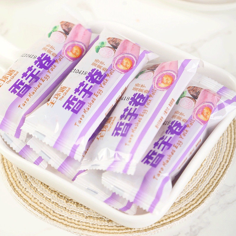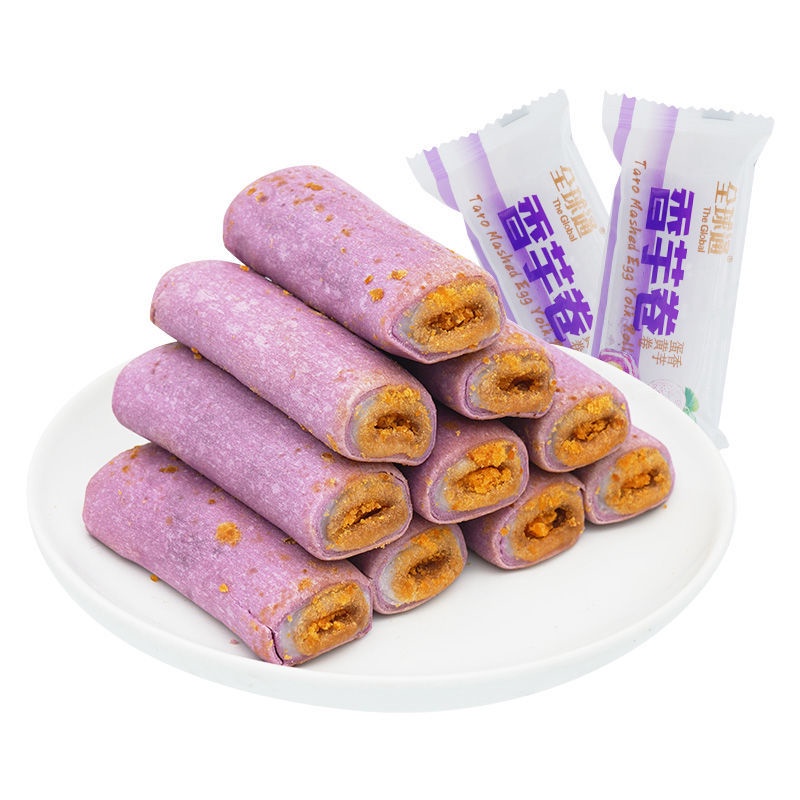 ™◘✺Gulung taro wangi merah bersih, gulung taro wangi tong global, gulung kuning telur, garing kuning telur, Xue Mei Nian