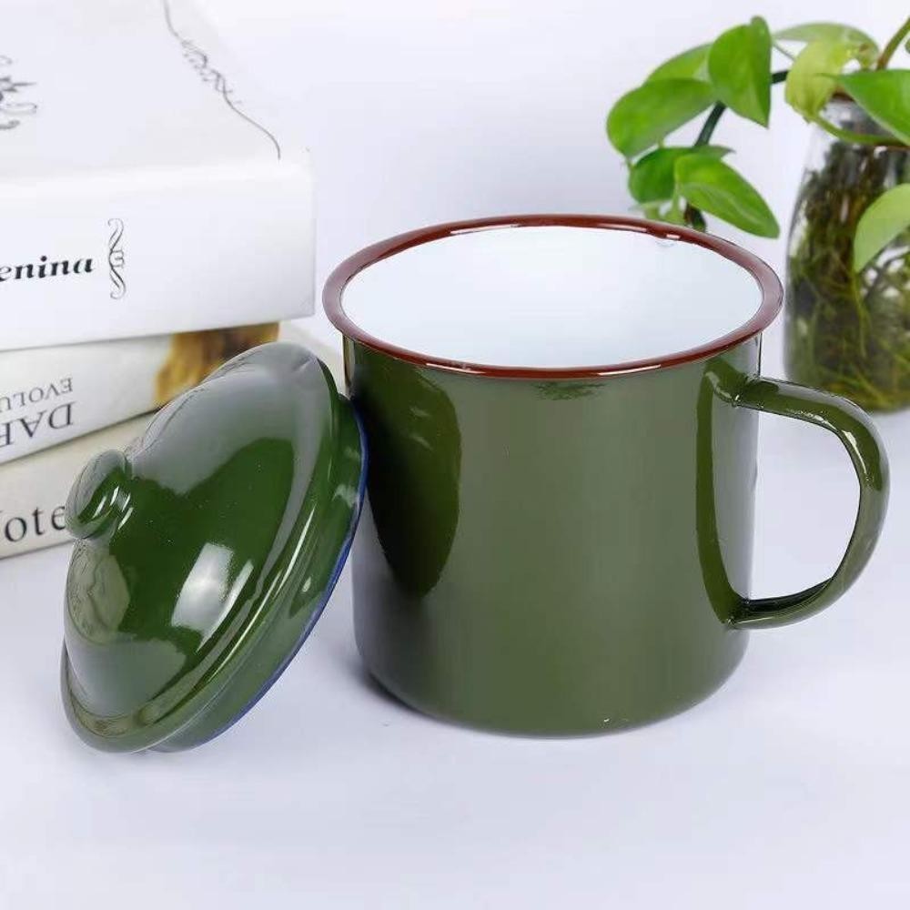 AUBREY1 Nostalgic Enamel Cup, 1970s Chinese-style Army Green Tea Jar, Water Cups Anti-fall with Cover Thickened Mug Gift