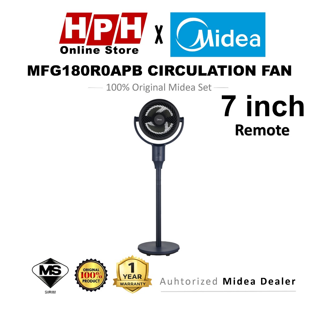 Midea 7 Inch Circulation Fan MFG180M0APB (Stand Fan) / 5 Blades / Adjustable Height / Dual Oscillation / Aroma Diffuser