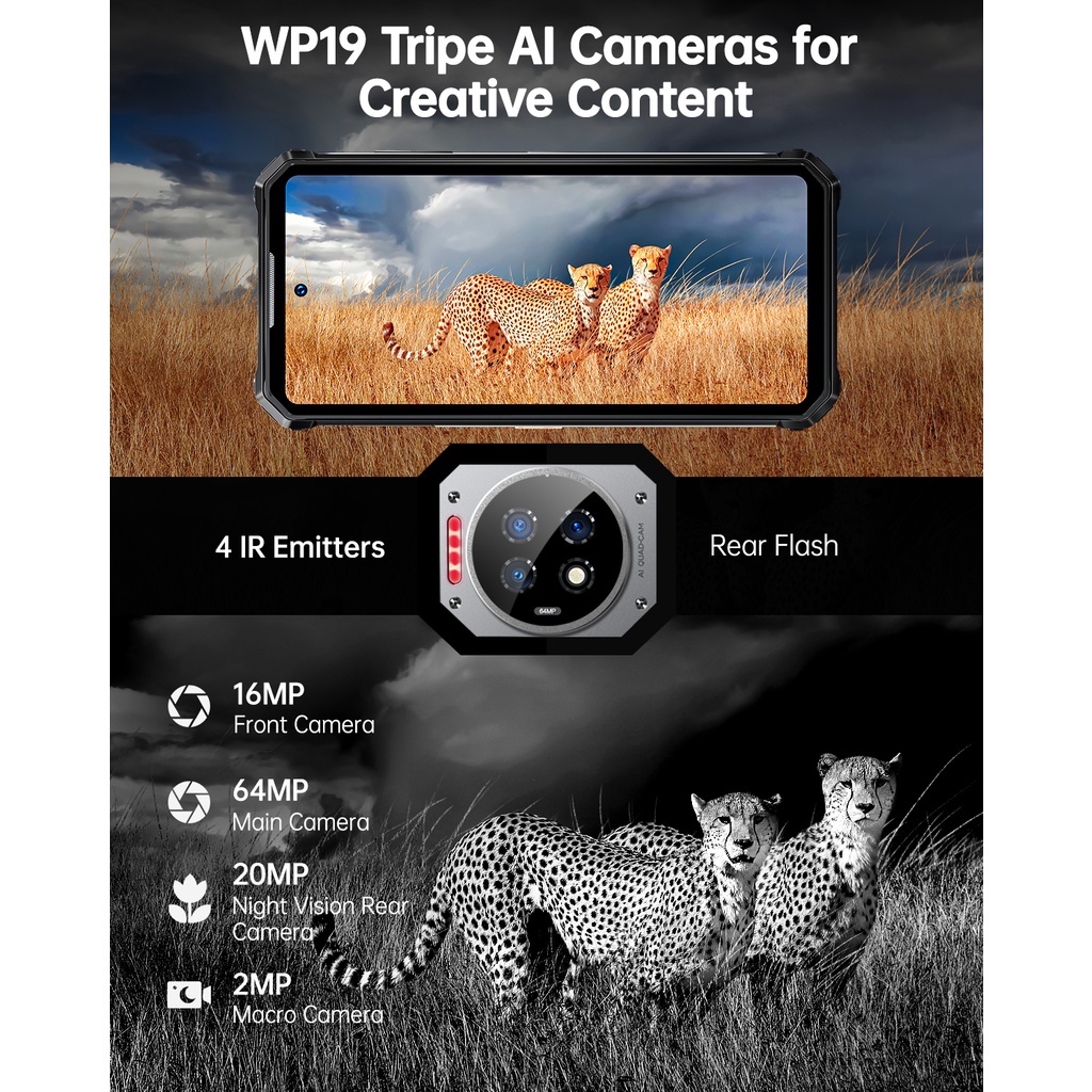 OUKITEL WP19(21000mAh/8GB+256GB/6.78" FHD+/90Hz/Android 12/64MP+20MP Night Vision/33W Fast Charging)Rugged Mobilies phone