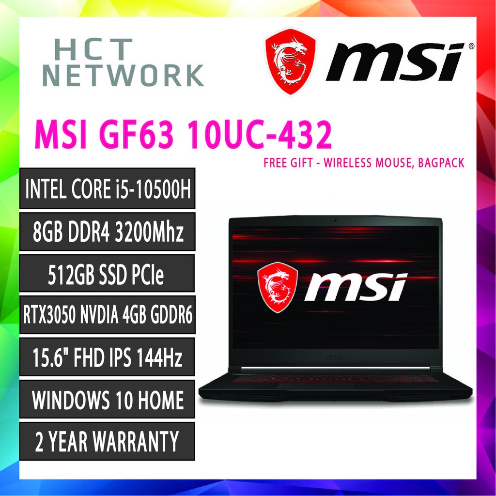 MSI Thin GF63 10UC-432 / GF63 10UC-681 MSi Gaming (I5-10500H, 8GB RAM, 512GB SSD, RTX3050 NVDIA 4GB, 15.6" FHD, W10