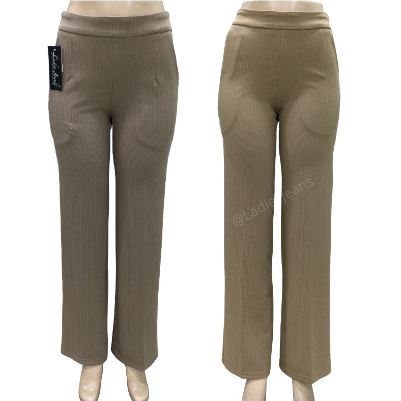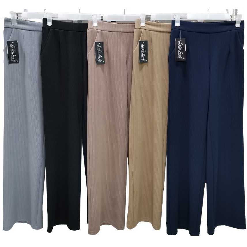 LADIESJEANS Stretchable Strip Pants Seluar Jalur Women's Ironless Slack Pants Straight-Cut Office Pants (Size: S - 3XL)