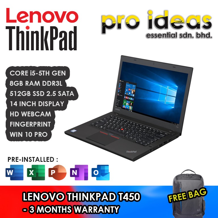 LENOVO THINKPAD SERIES - T450 / X1 YOGA / X260 / X270 / X1 CARBON - INTEL CORE i5 / CORE i7 - WINDOWS 10 PRO
