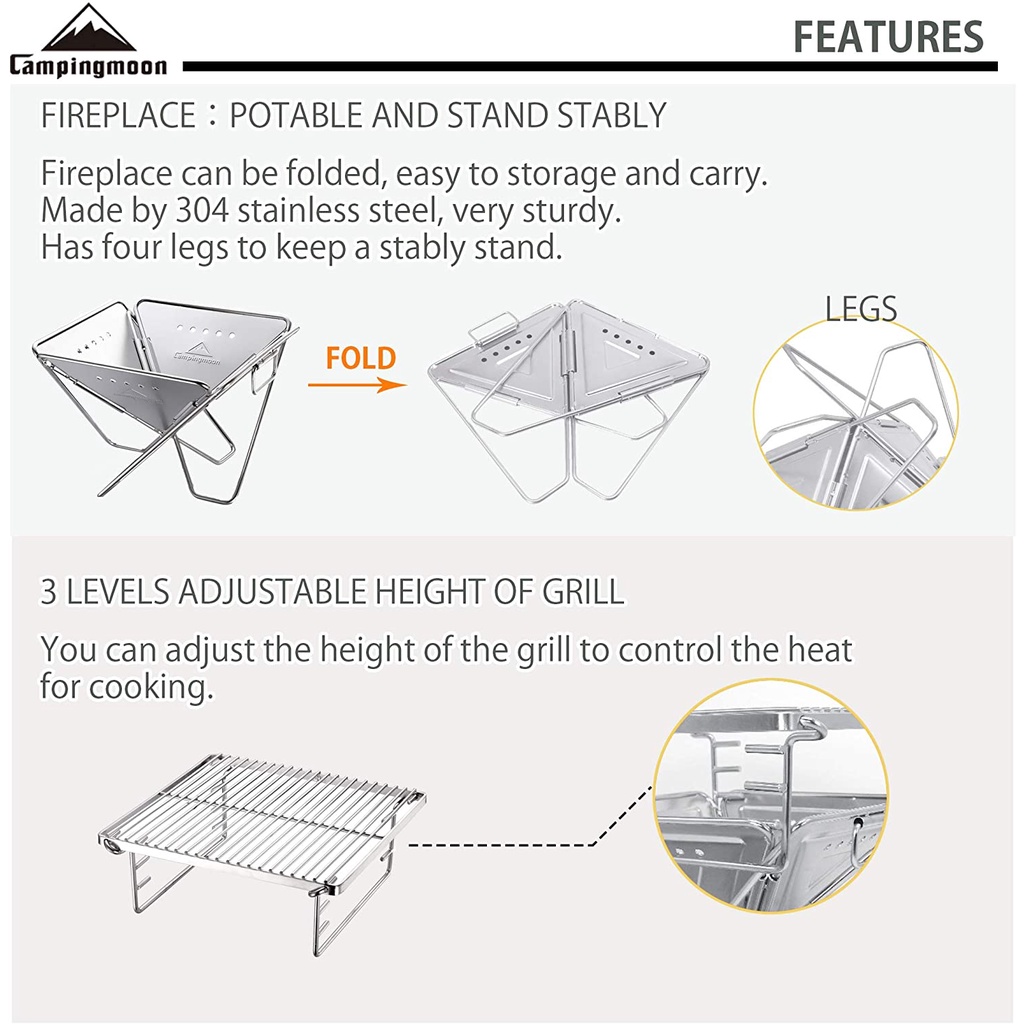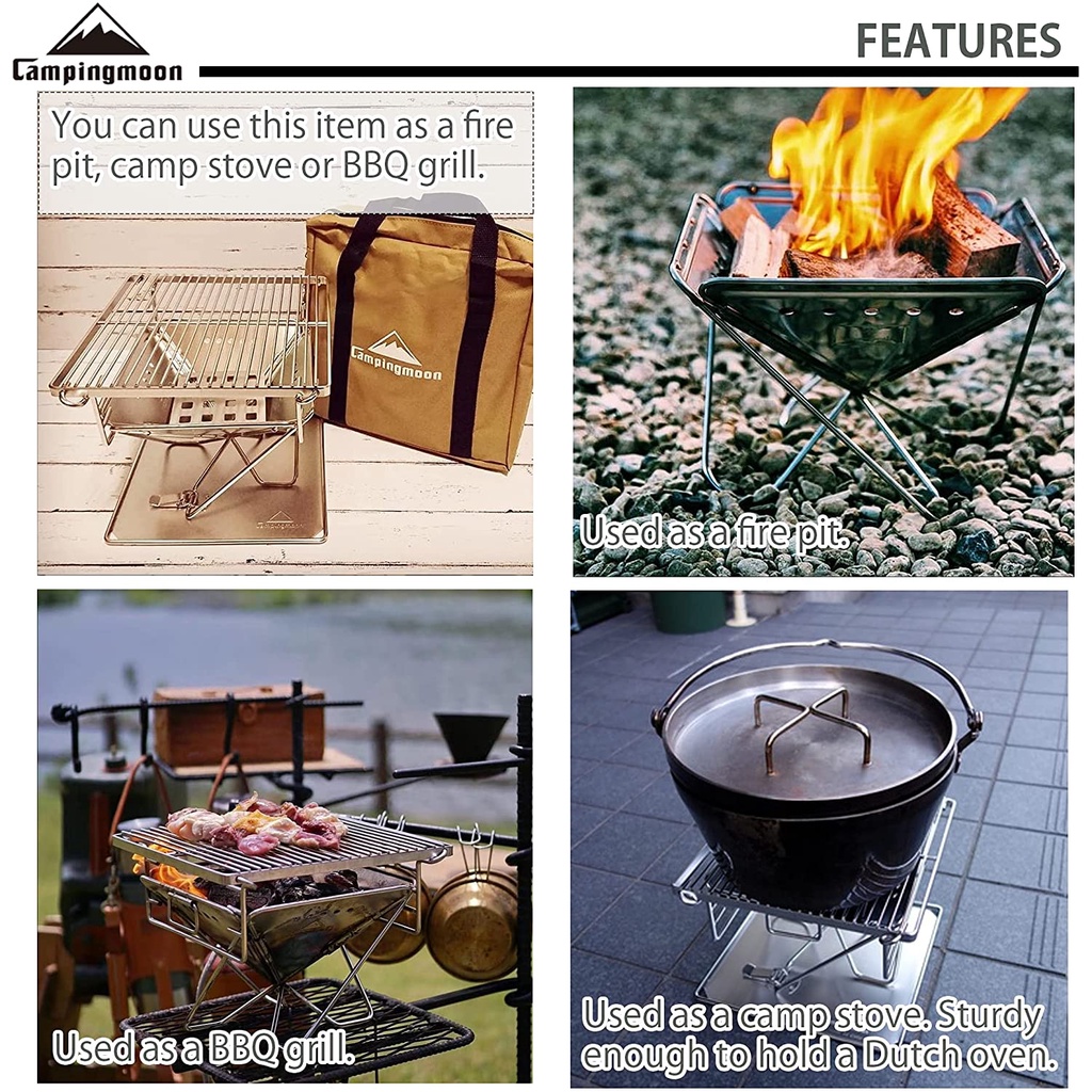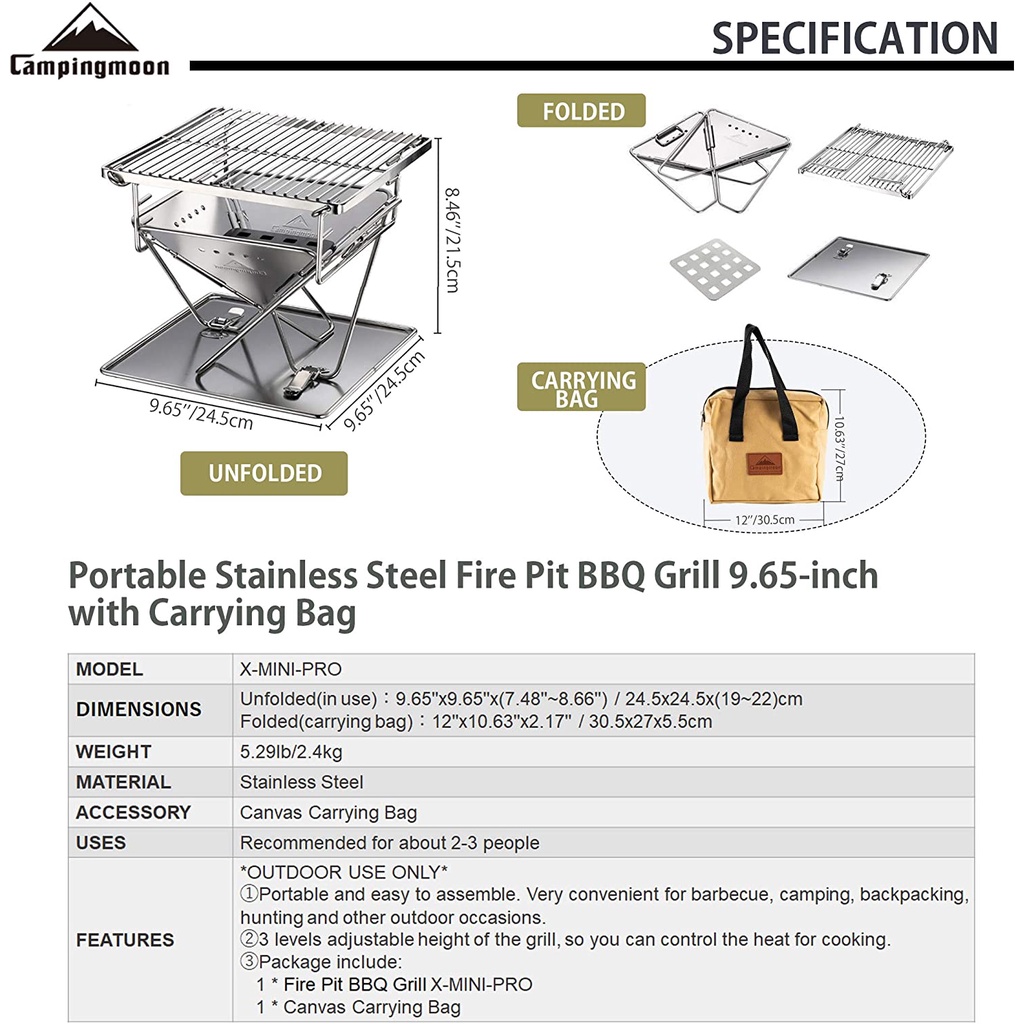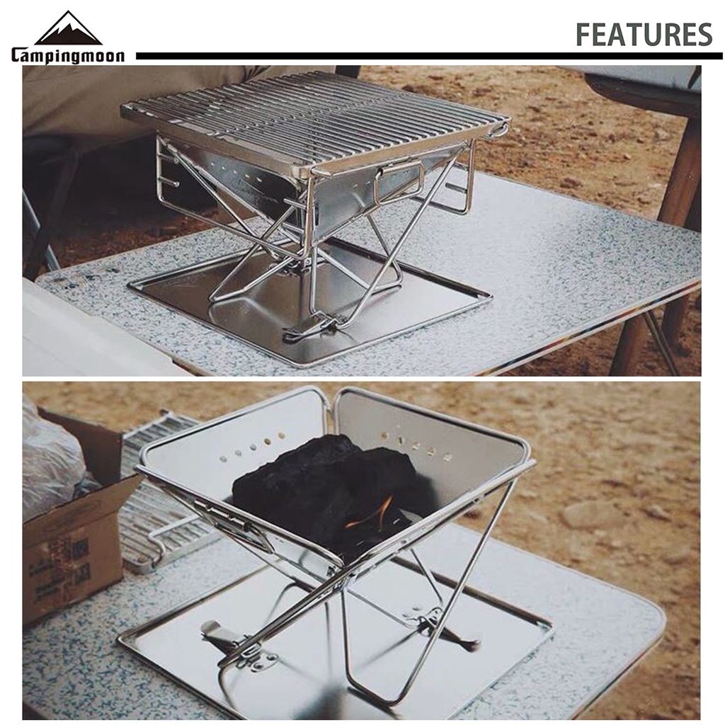 CAMPINGMOON X-MINI PRO Stainless Steel Foldable Barbecue Grill Mini with Carry Bag BBQ Grill Stand 不锈钢折叠烧烤炉