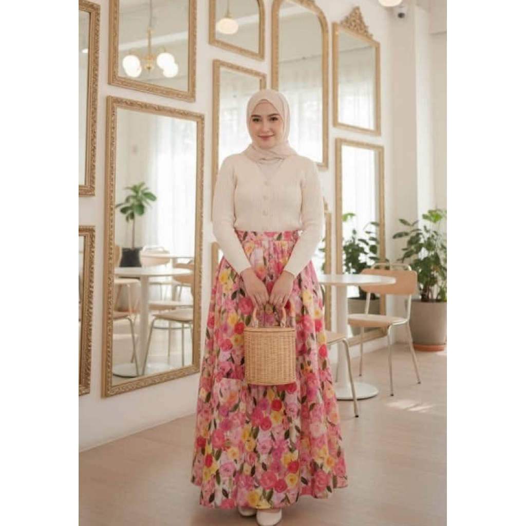 Skirt English Floral Design Flowy Viral Bunga Bangkok