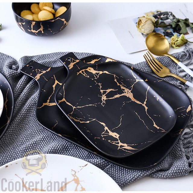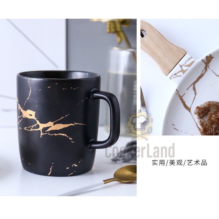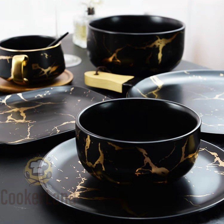 Nordic Marble Matte Gold Side Porcelain Ceramic Tableware Dinnerware Luxury Plate Bowl Mug European