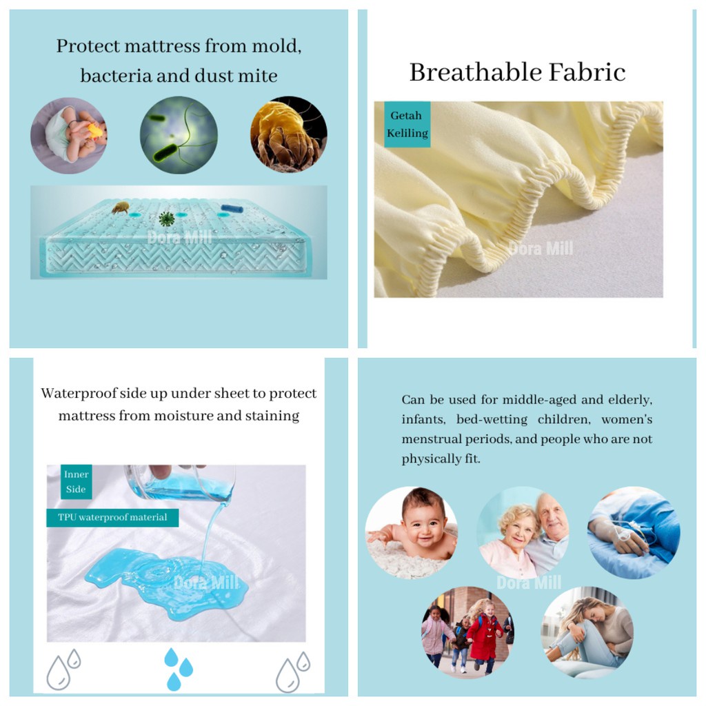 READY STOCK Waterproof Fitted Bedsheet Cadar Single/Queen Cadar Murah (Cadar Kalis Air)