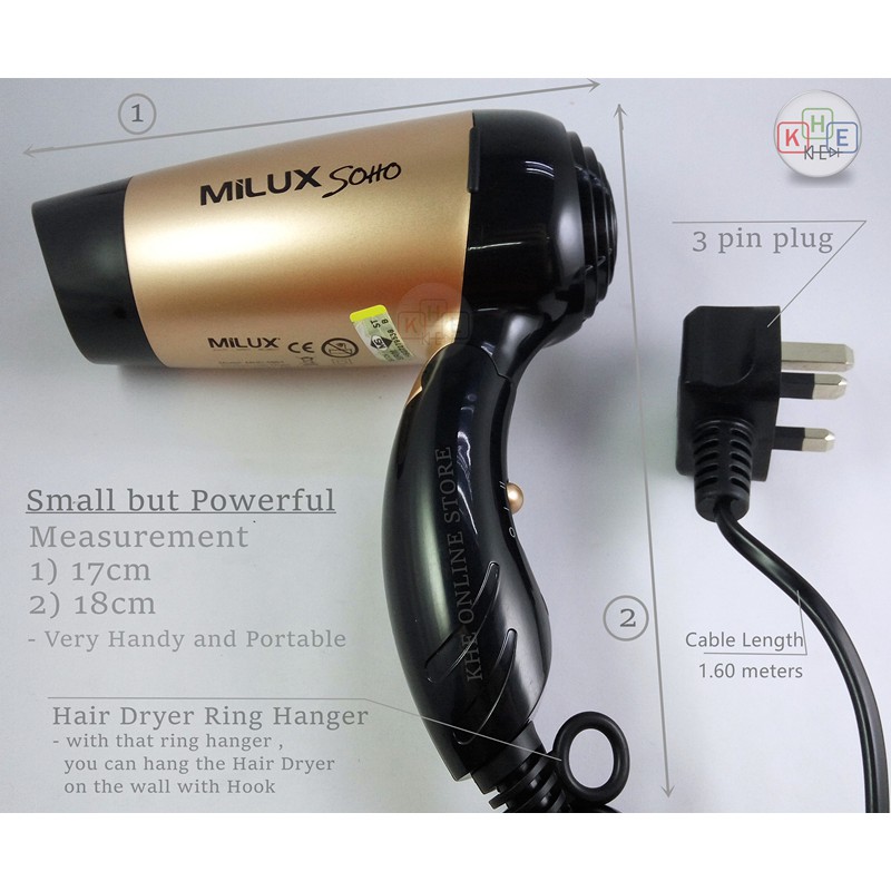 【Sirim Approved】Milux Soho Foldable Traveling Hair Dryer 1200W MHD-5901