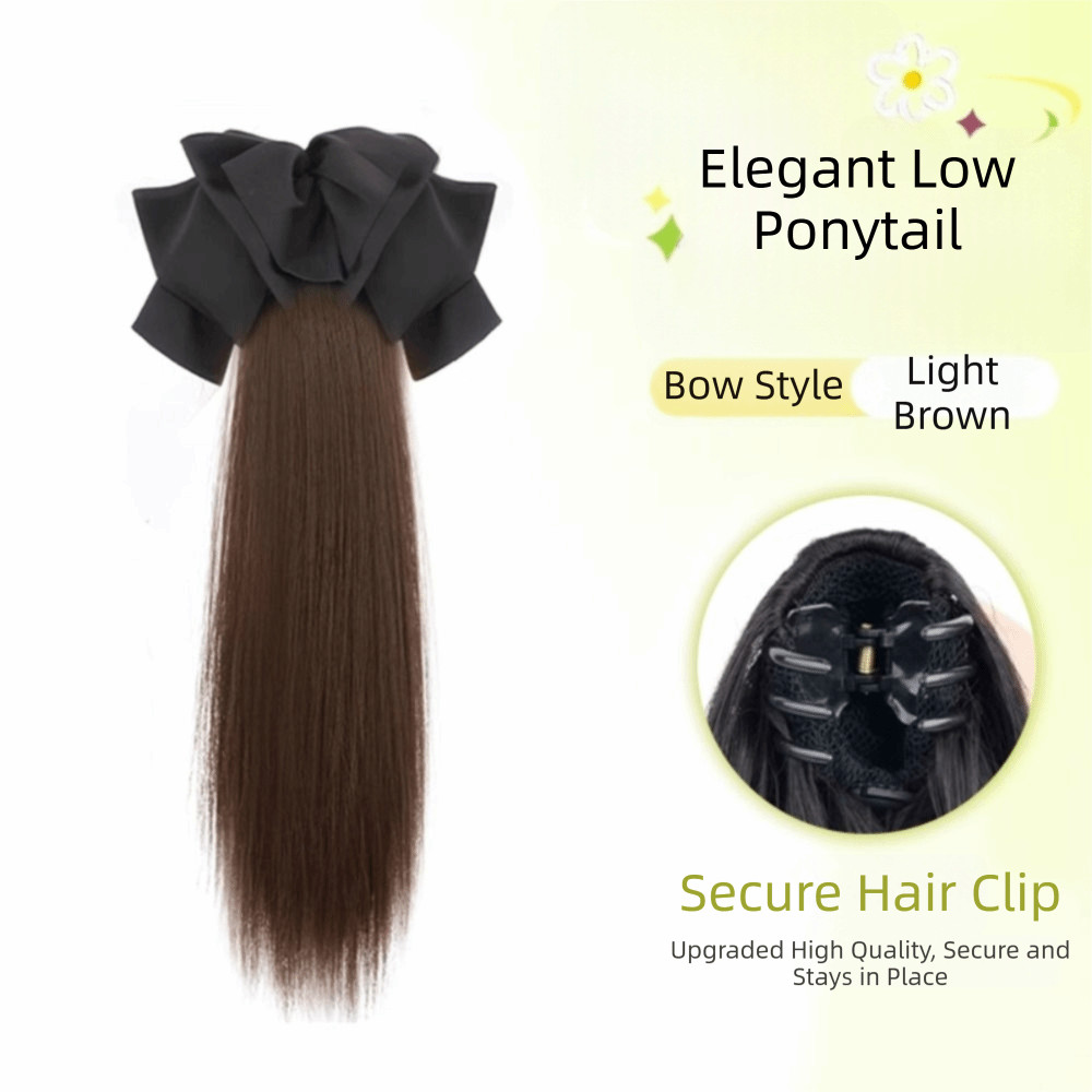 MOCHO Long Claw Clip Wig, Hair Extensions Korean Style Bow Straight Ponytail, Elegant Natural Clip on Fluffy Pony Tail Hair Piece Party
