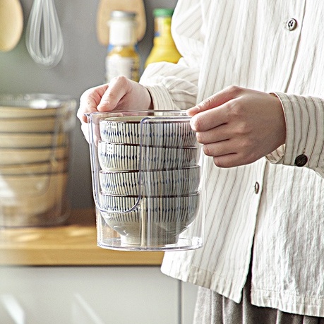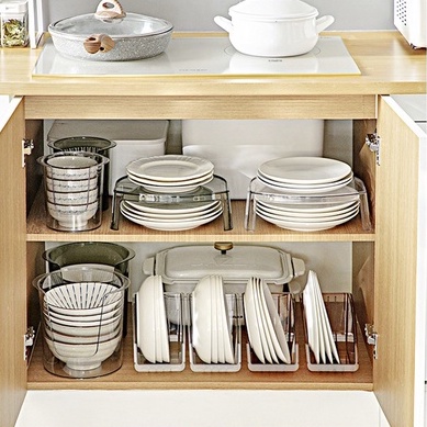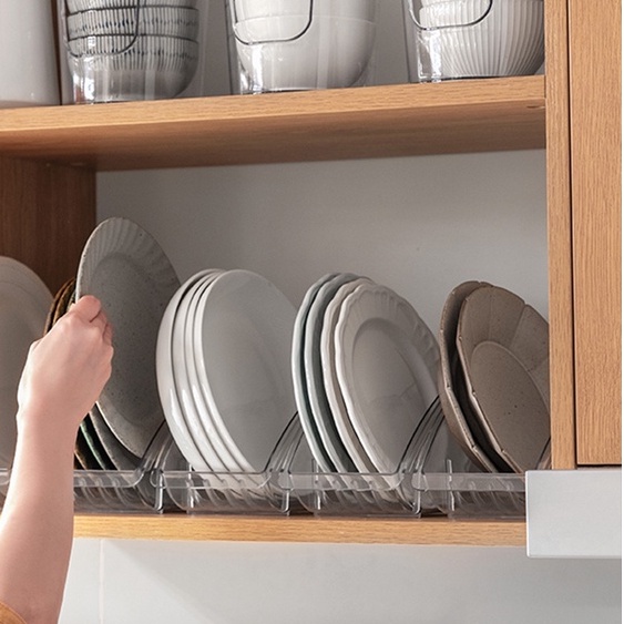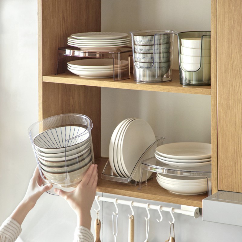 Locaupin Dinnerware Bowl Plate Holder Plastic Dish Storage Display Shelf Tableware Rack Kitchen Organizer