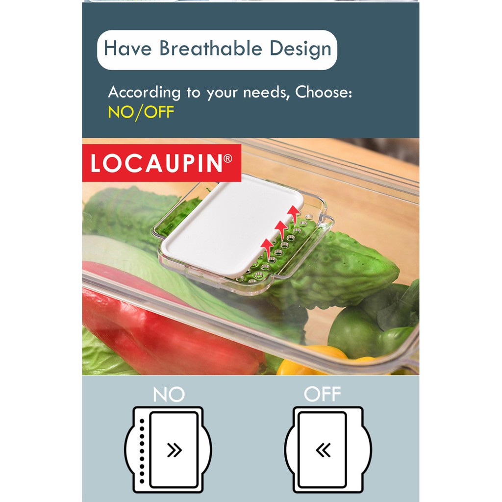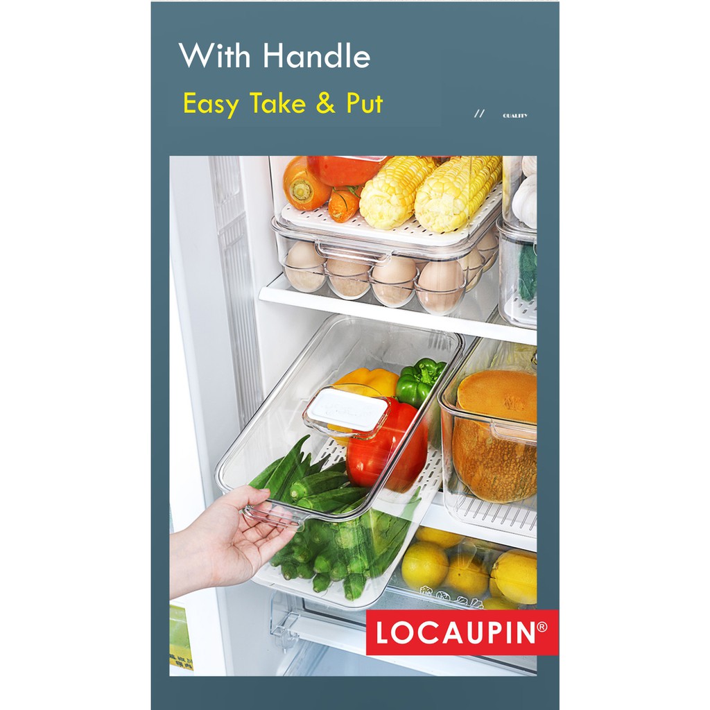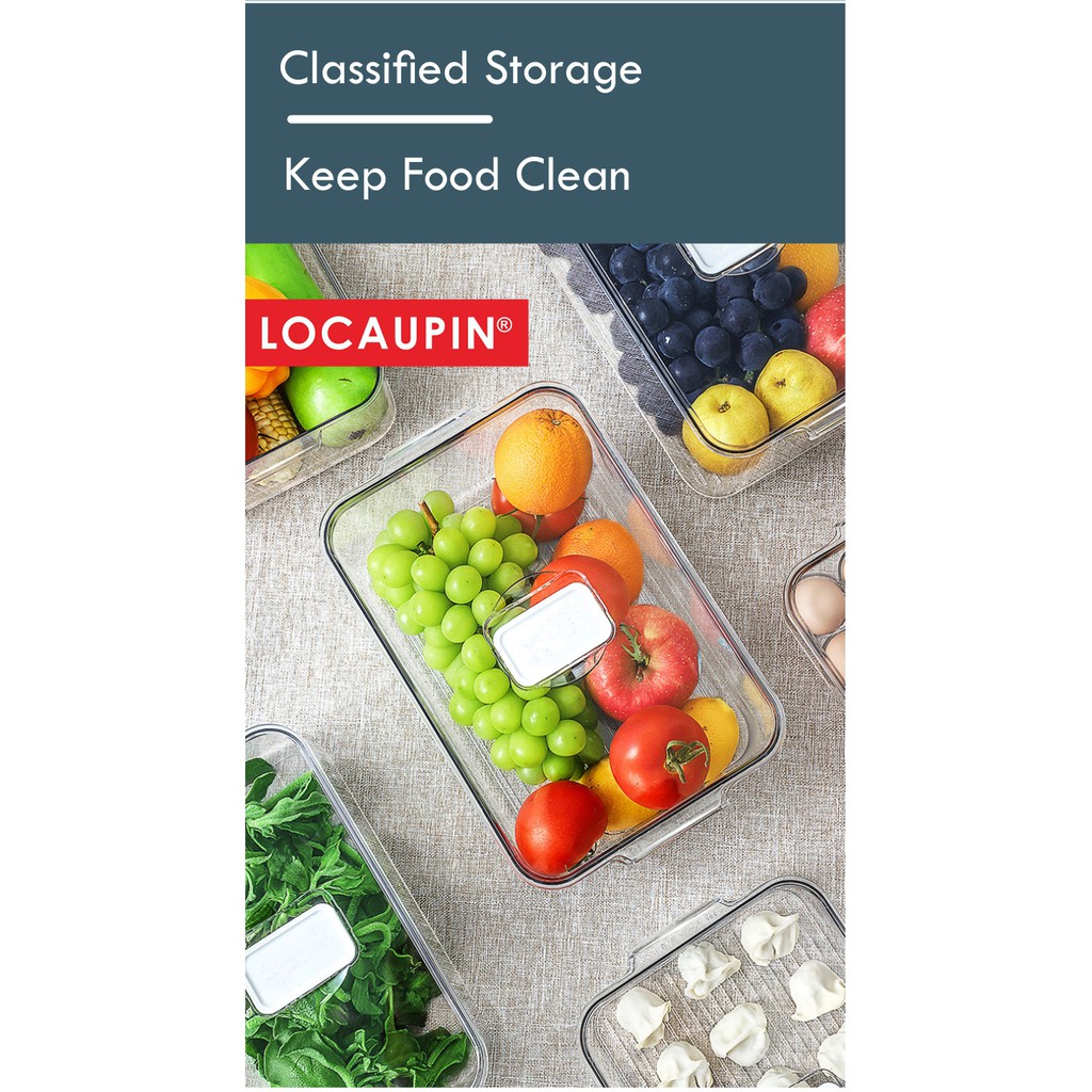Locaupin Stackable Kitchen Pantry Cabinet Refrigerator Freezer Food Storage Box with Handles Lid - Organization