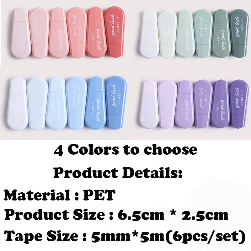 6pcs/set Morandi Correction Tape Student Stationery School Office 护套修正带KW6319
