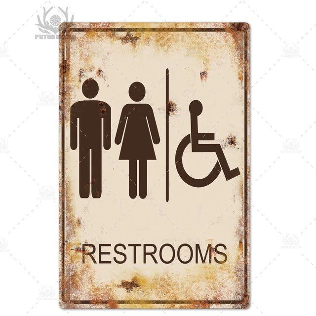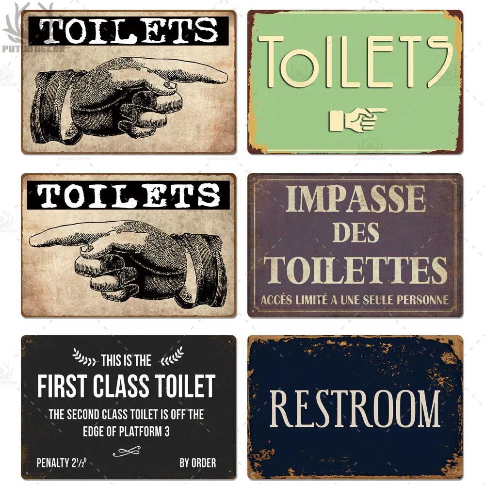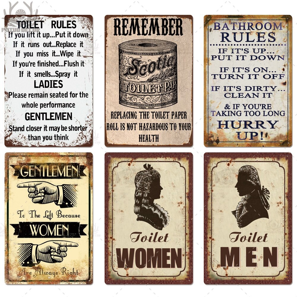 Toilet Sign Plaque Metal Vintage Bathroom Metal Sign Tin Sign Wall Decor for Toilet Bathroom Restroom