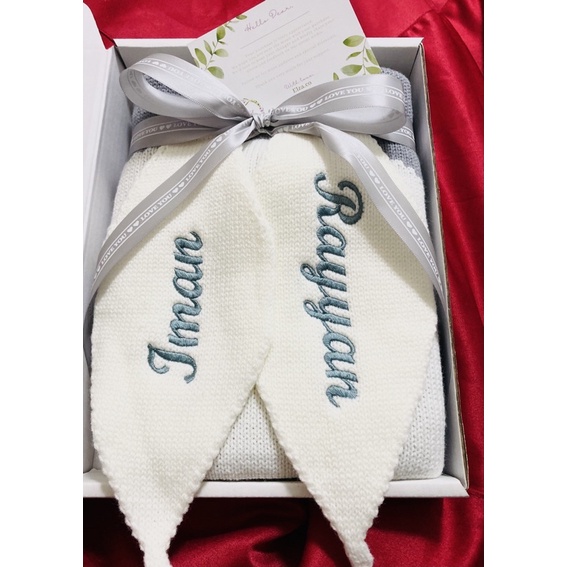 Personalise Sulam Nama Baby Bunny Blanket Selimut Rabbit