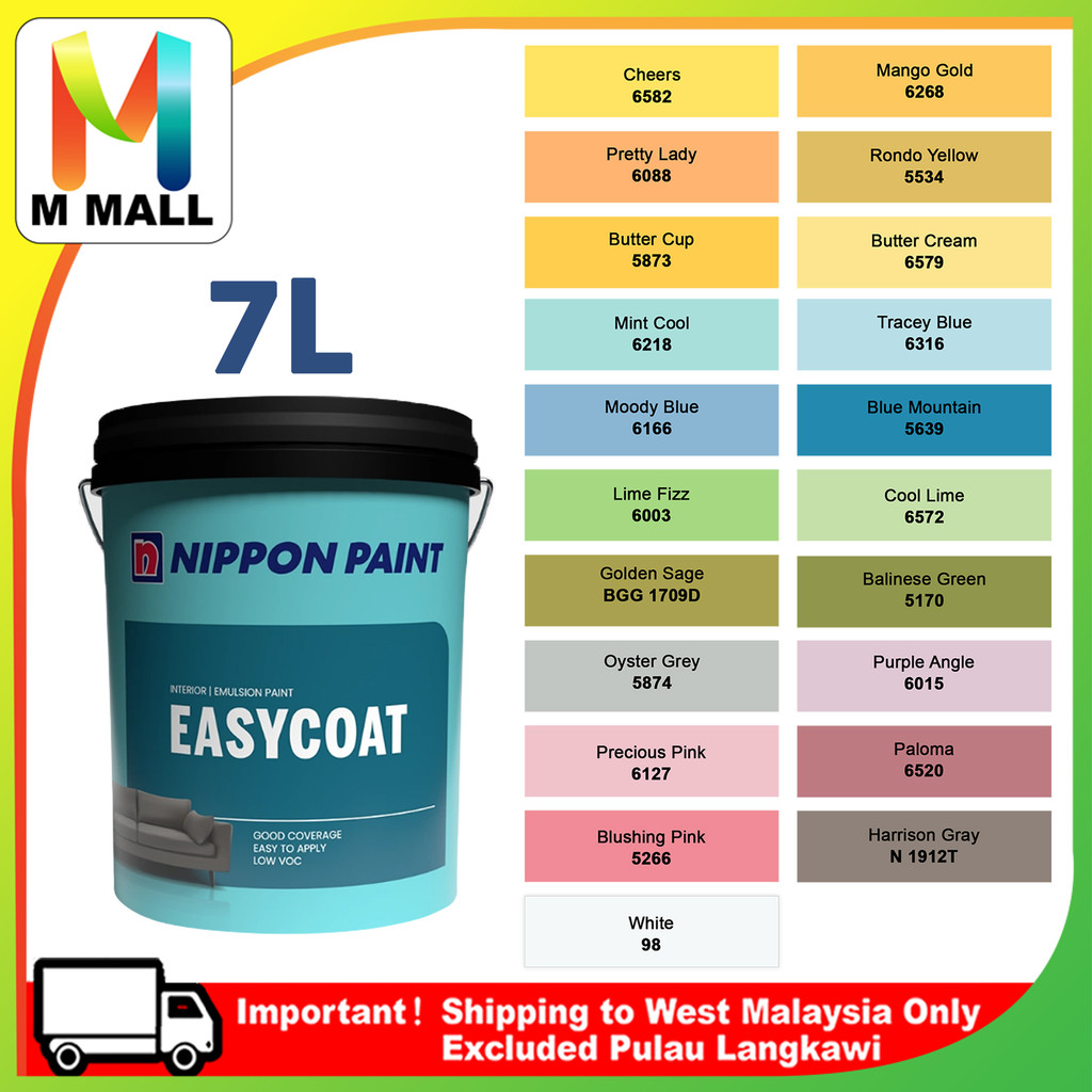 7L Nippon Paint Easycoat Interior Emulsion Paint / Cat Rumah / Cat Ruang Tamu / Cat Dinding / 7200 PANTEX (WHITE 9102)