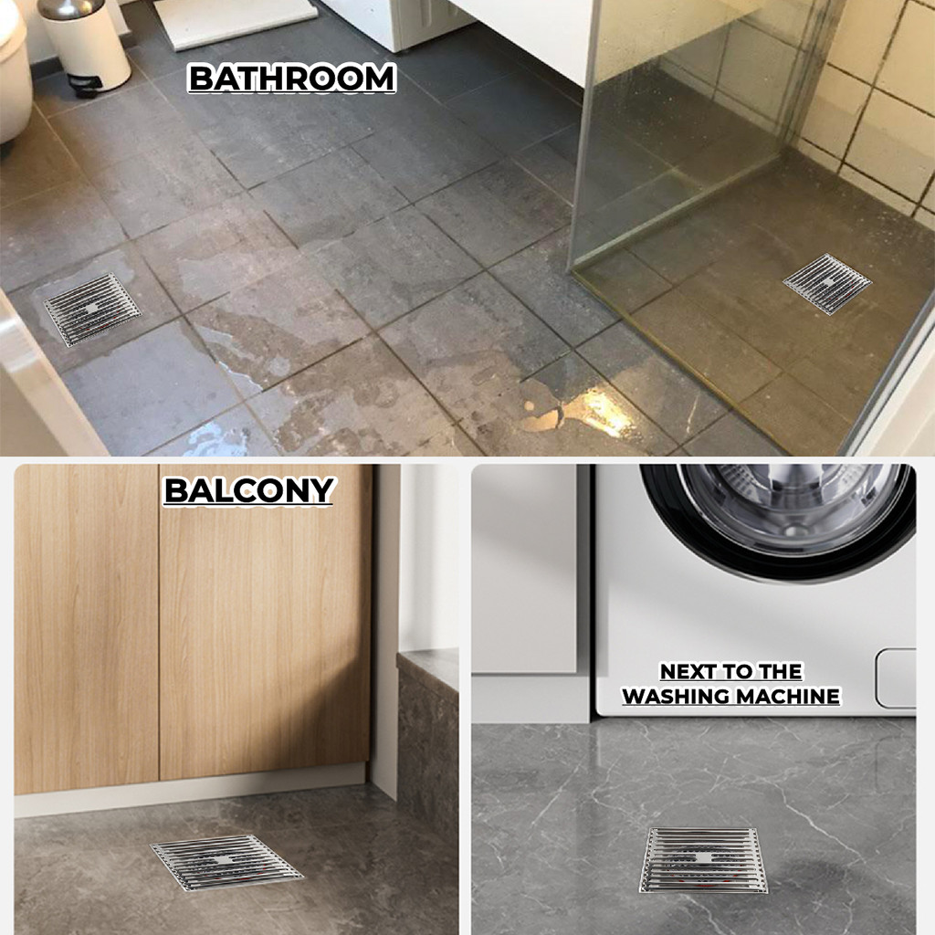 (3355A / 3355AH) BATHROOM 6" INCH STAINLESS STEEL SQUARE FENCED FLOOR GRATING TRAP DRAINER COVER WITH FILTER WASTE