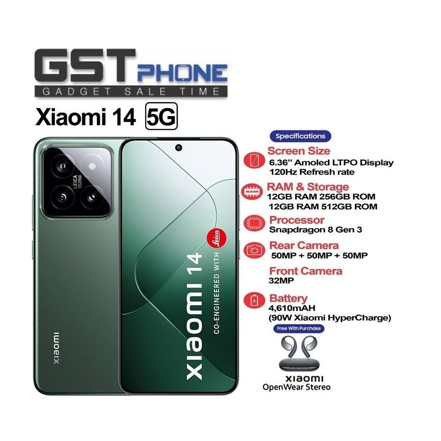 Xiaomi 14 5G (12GB+12GB Extended Ram+256GB Rom) (Original Malaysia Set) With Premium Gift