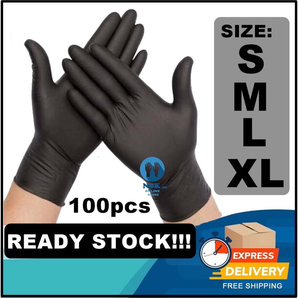 [Ready Stock] Disposable Nitrile Hand Gloves - BLACK / Sarung Tangan Hitam / Tattoo Glove