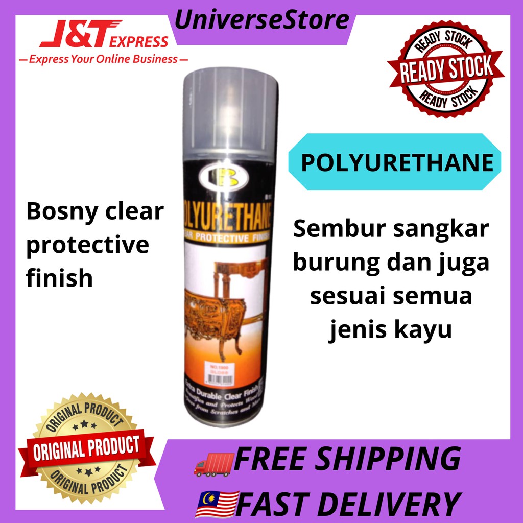 SPRAY CLEAR BOSNY Polyurethane Protective / Finish Wood Furniture Protect/pengilat sangkar burung dan kayu, perabot,