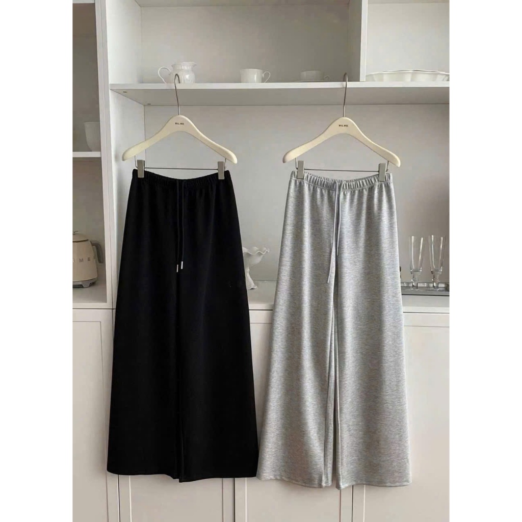 Smooth fleece pants with small waistband, wide leg, comfortable form for both men and women