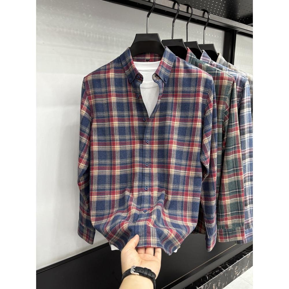 2025 Spring High-End Plaid Long-Sleeved Shirt Men American Casual Top Shirt Jacket Men