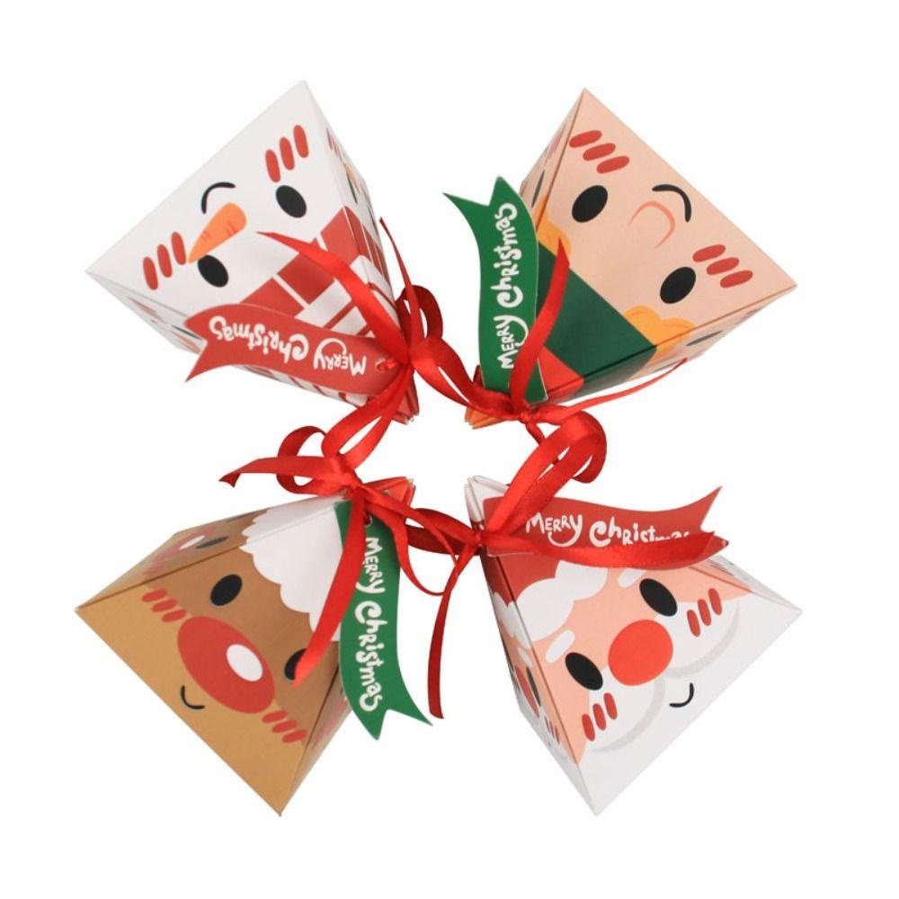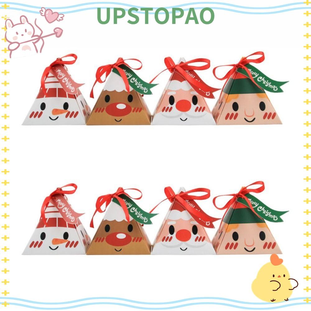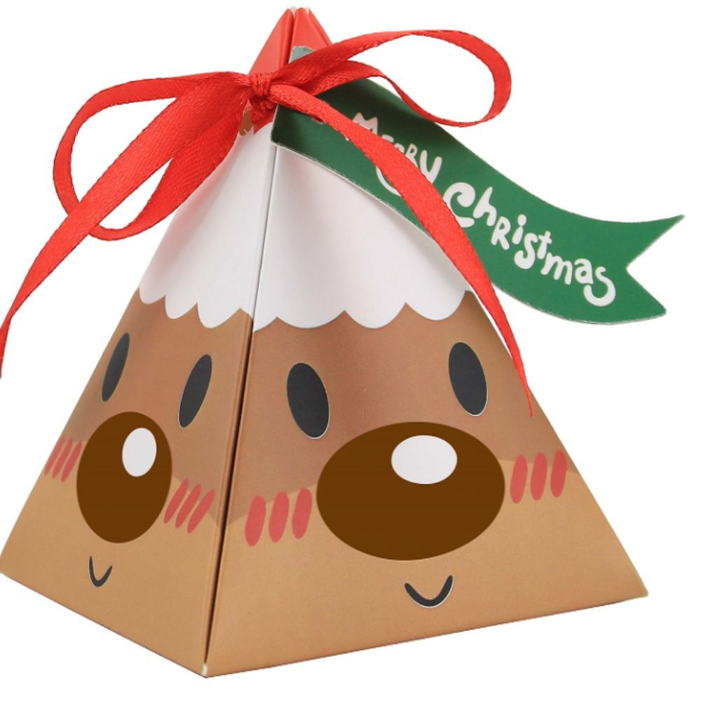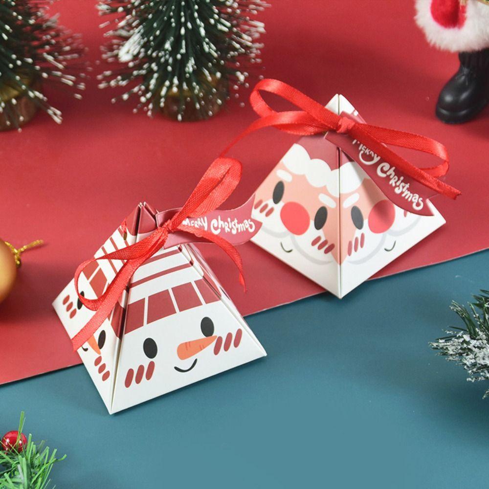 UPSTOPAO 10pcs Creative Triangle Santa Claus Paper Box Christmas Gift Wrappers Party Decor DIY Kraft Paper Red Candy Box