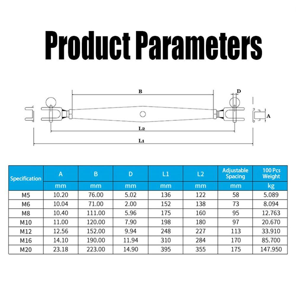 INTERESTING Marine Rigging, 304 Stainless Steel Screw Closed Body Tensioner, Hardware M5-M12 Length Adjuster Clamp Jaw Turnbuckle Bolt Steel Wire Rope