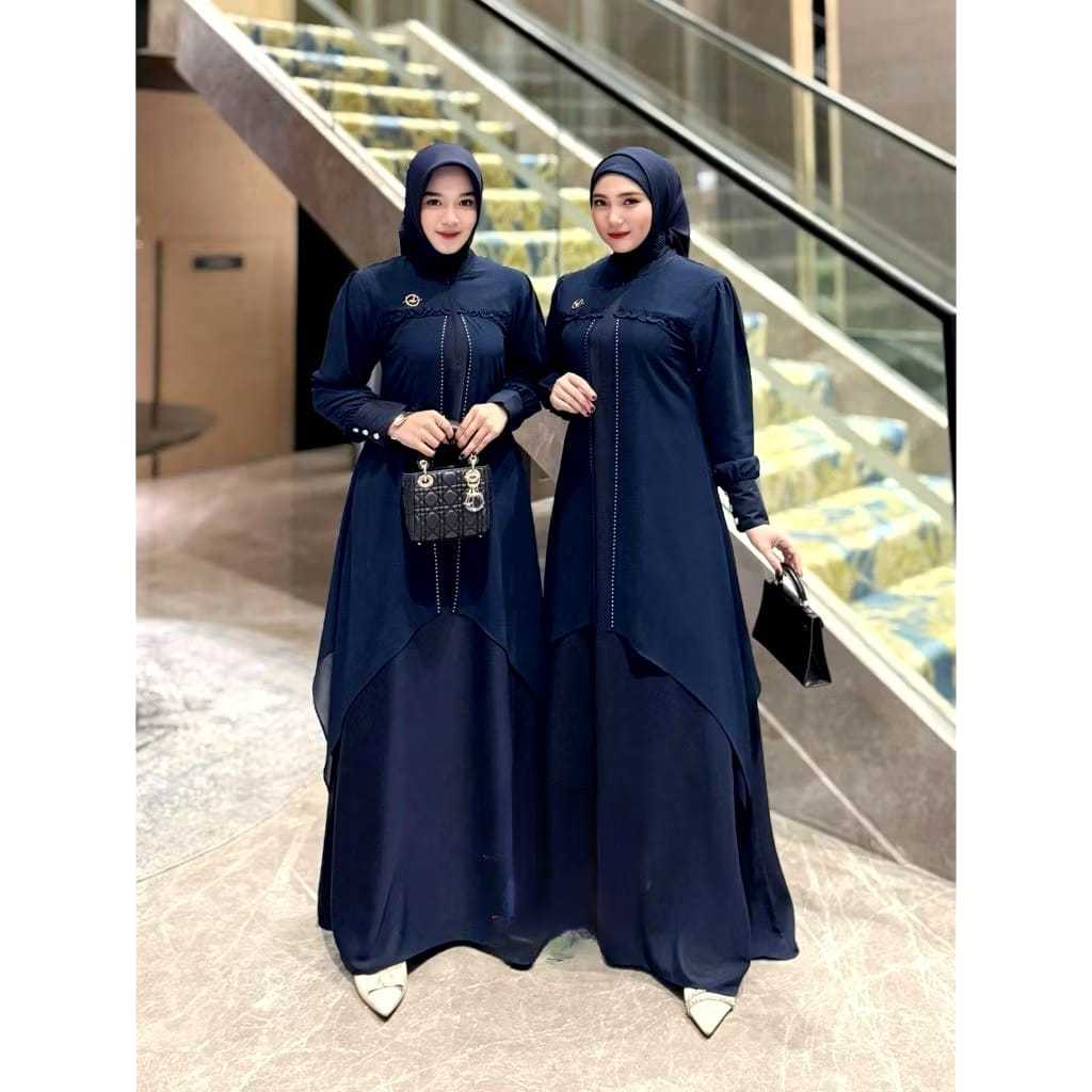 Gamis Ceruty baby doll full lining Jasmine Muslim Dress for Bridesmaid Party Engagement Elegant Eid mix Swaroski - Burgundy Maroon Mahogany Color