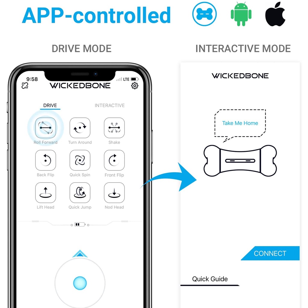 Cheerble Wickedbone Smart Bone Dog Toy - Automatic Interactive App Controlled Pet Toy Ball | Mainan Tulang Anjing