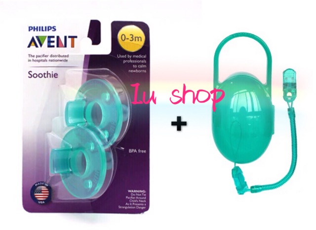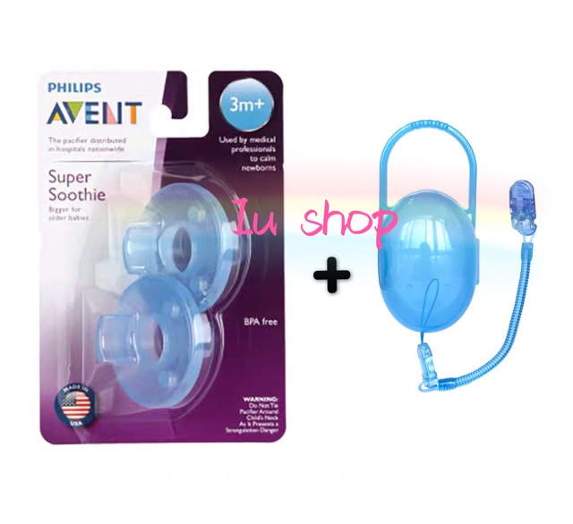 READY STOCK! Philips Avent Super Soothie Pacifier 3m+ blue/green/pink+chain+case