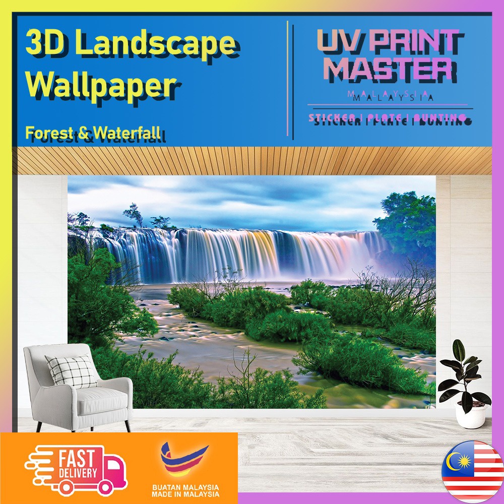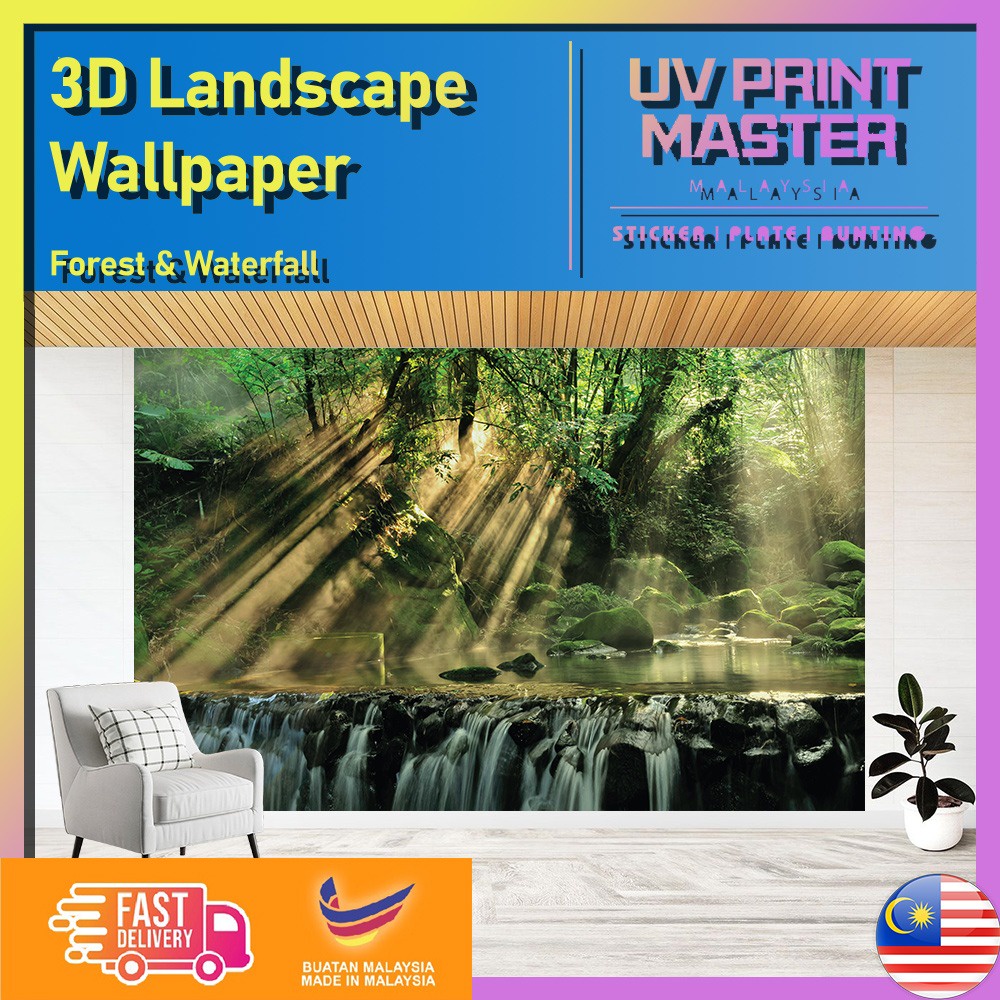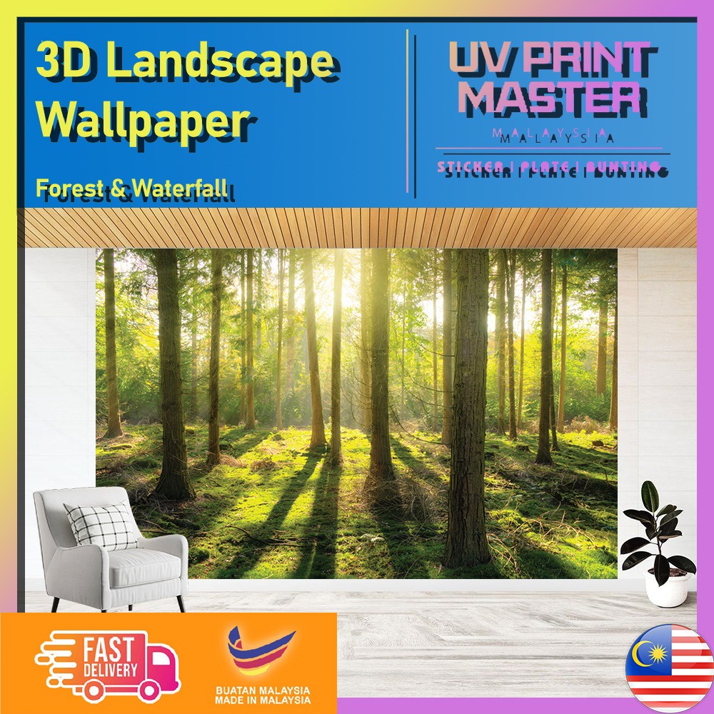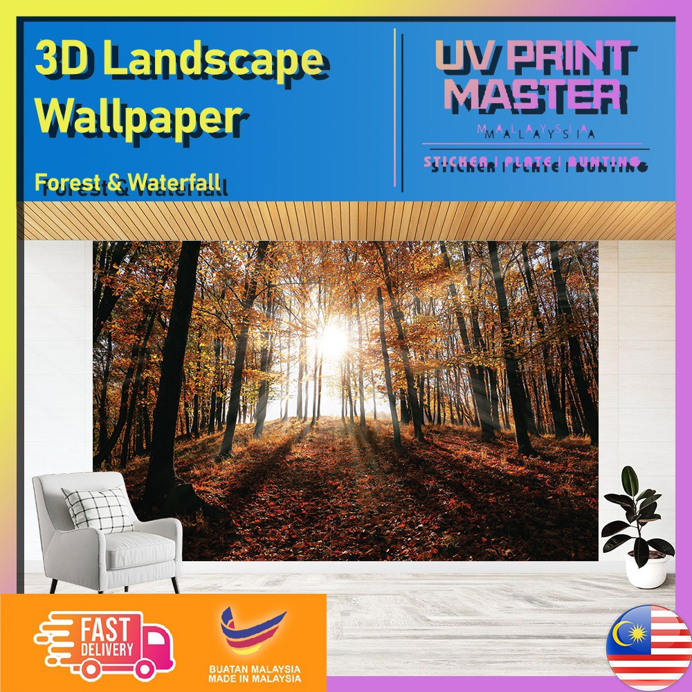 UV PRINT 3D Mural Landscape Scenery Wallpaper/Sticker/Kertas Dinding Rumah IN/Outdoor Use No Need Glue Cafe Wallpaper壁纸墙