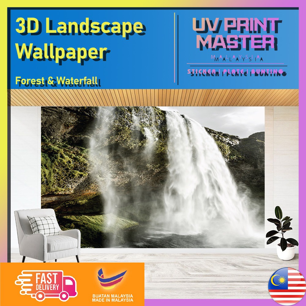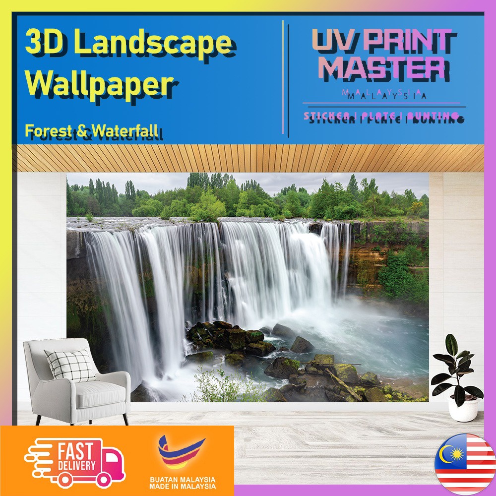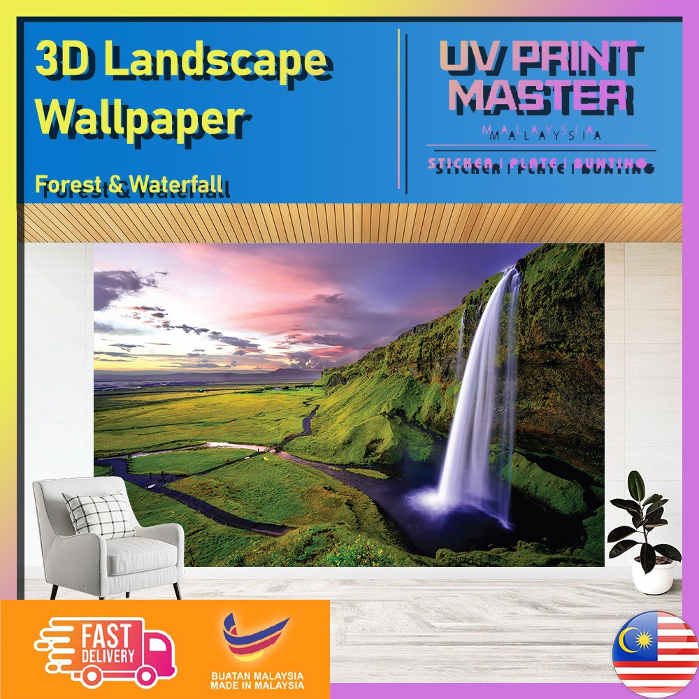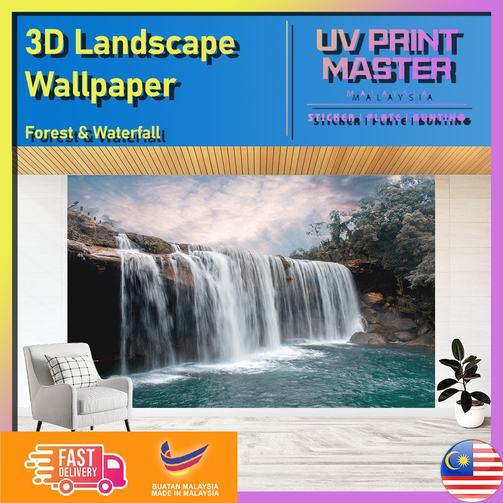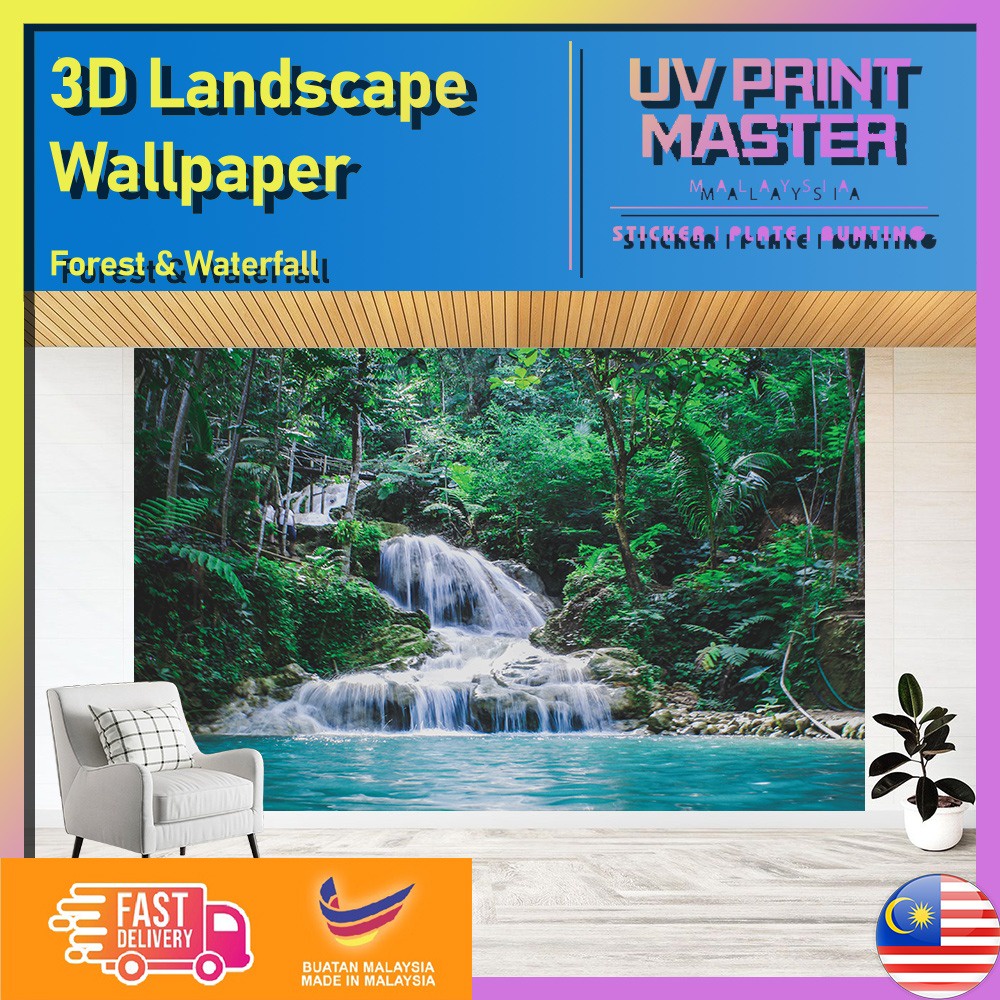 UV PRINT 3D Mural Landscape Scenery Wallpaper/Sticker/Kertas Dinding Rumah IN/Outdoor Use No Need Glue Cafe Wallpaper壁纸墙