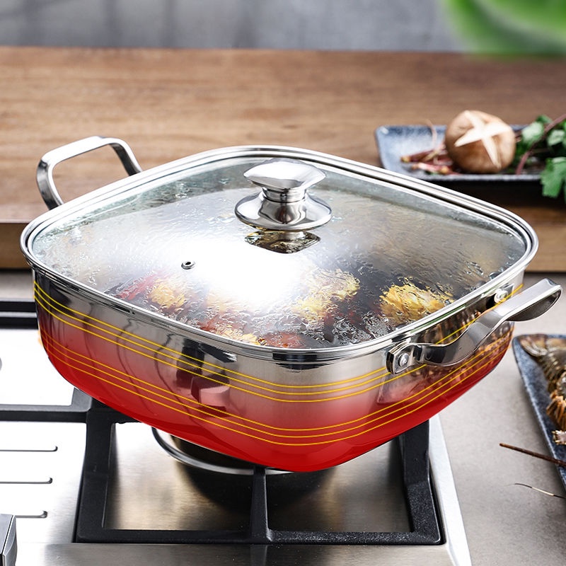 Double-layer 304 stainless steel steaming pot household hot pot compound bottom extra thick soup pot electromagnetic gas stove universal steaming dual-use3333